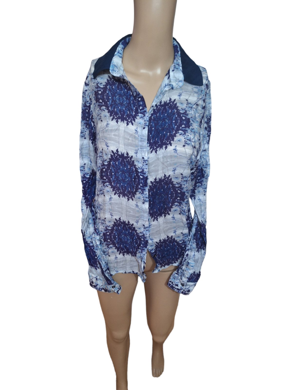 Dámska ľahučká blúzka značky MNG. Dĺžka je 65cm,obvod hrudníka je 86cm a obvod pása je 84cm. Dĺžka rukáva je od krku 70cm. kód 350A