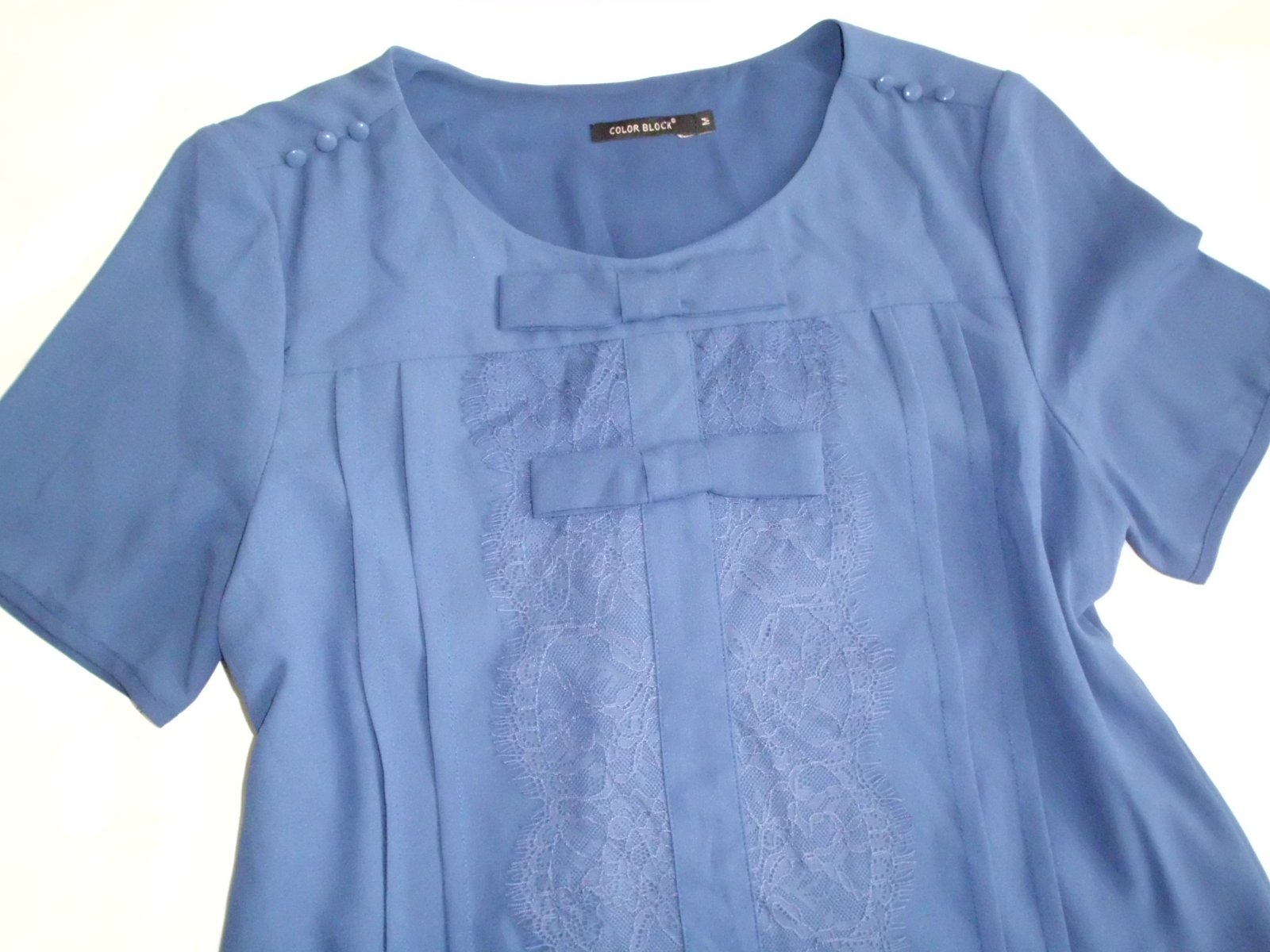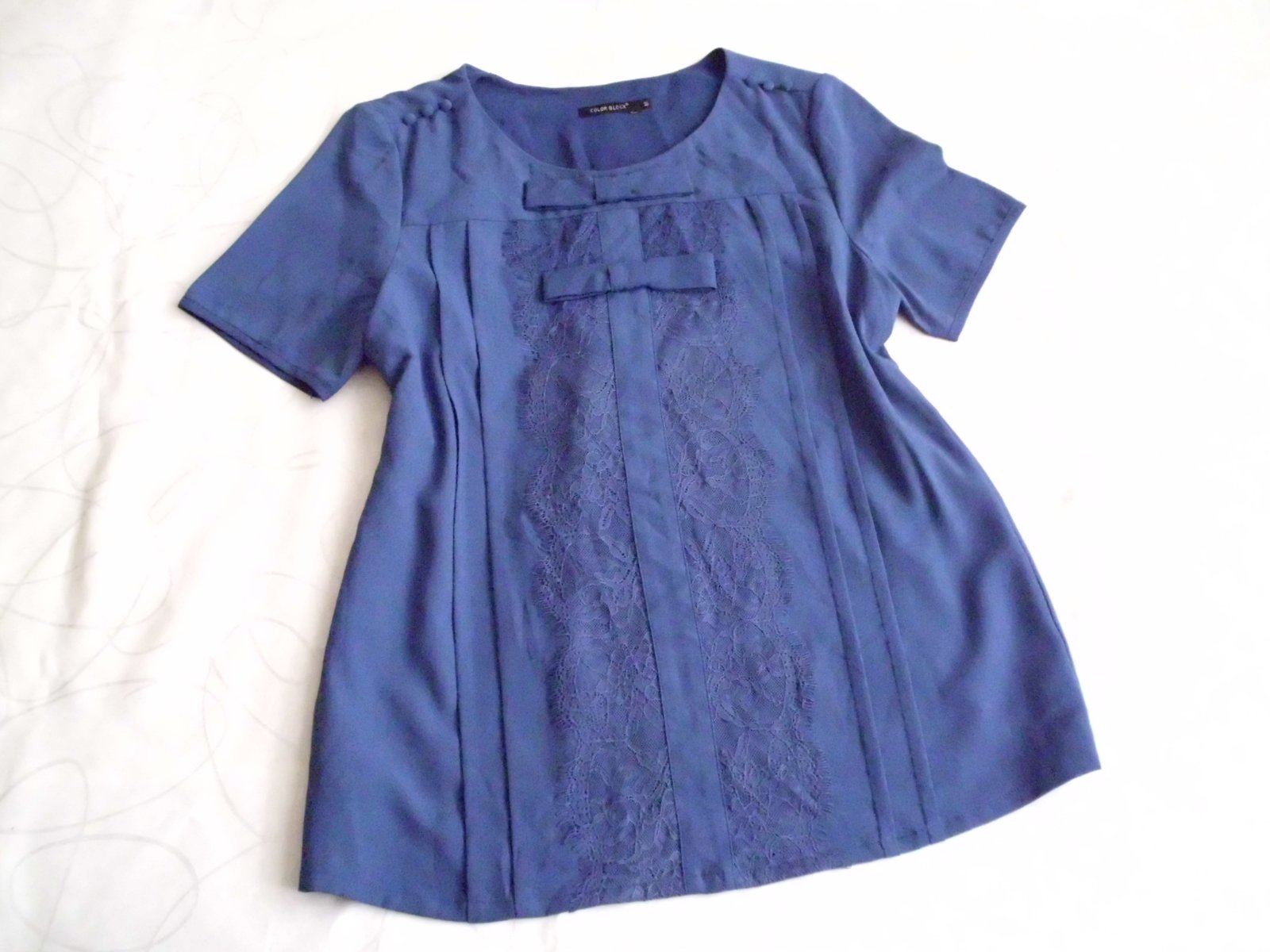 Predám dámsku blúzku Color Block vel. M ,šírka 49 cm, dĺžka 64 cm, rukáv 22 cm, príjemný materiál vnútri podšitá ale nepresvitá, modrá farba , pekné vypracovaná, raz oblečená, 100% stav