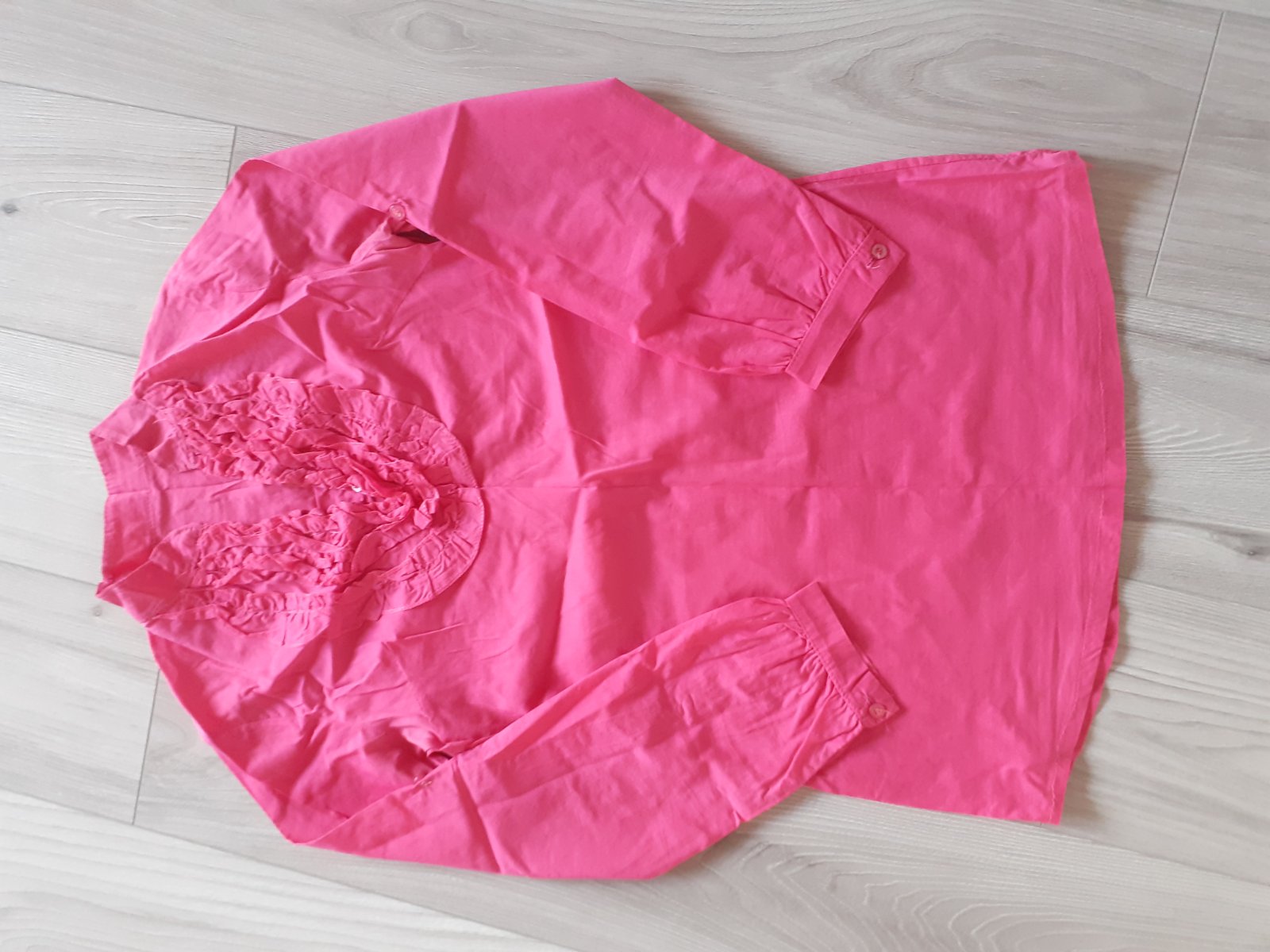 ružová košielka s moznostou uviazania masle, velkost M, cena: 12+poštovné dlzka 65cm, obvod hrude 94cm, dlzka rukav 64cm