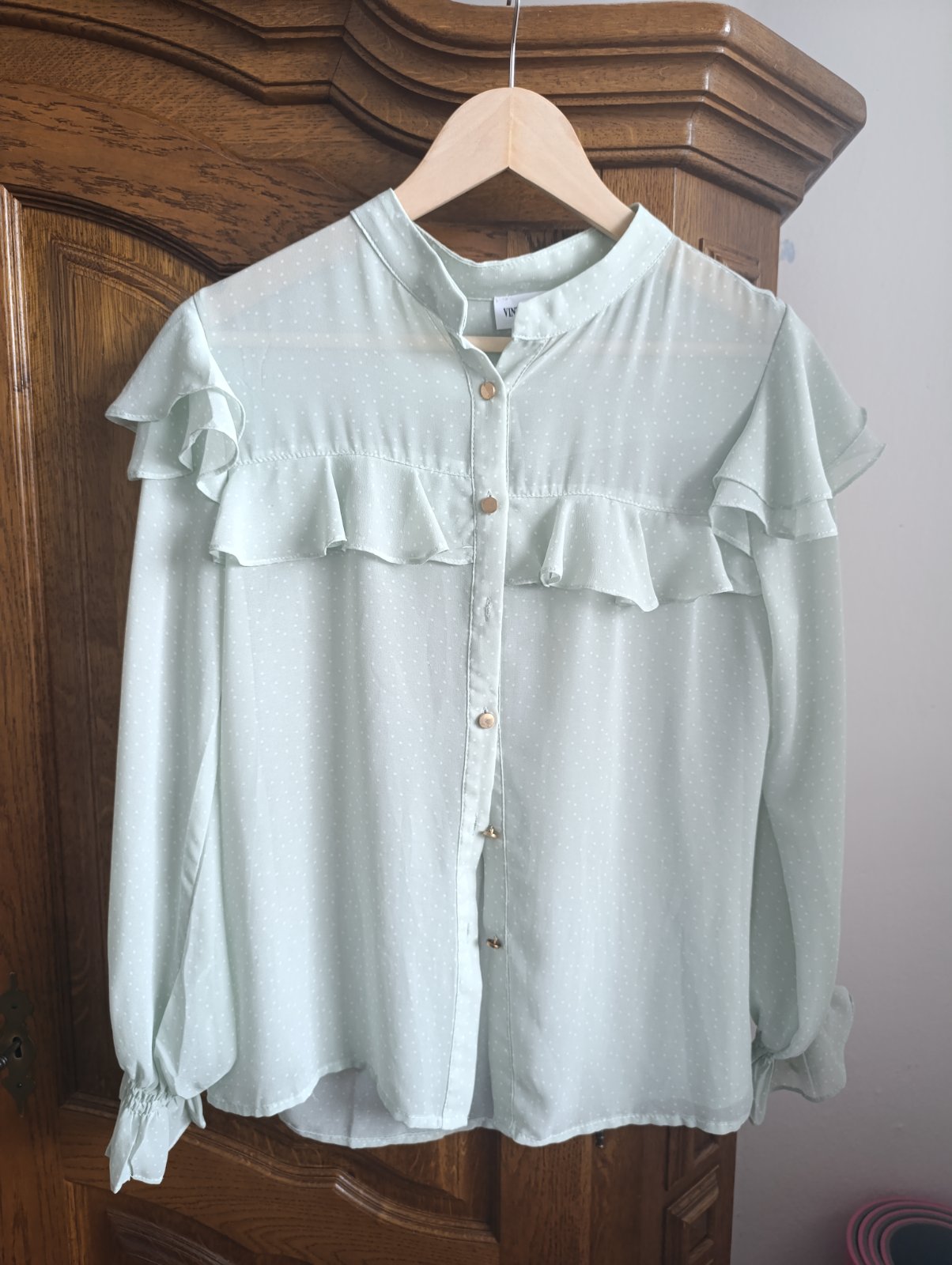 Ľahká saténová bluzka , zvláštna farba, svetlozelena až jemne mentolové.