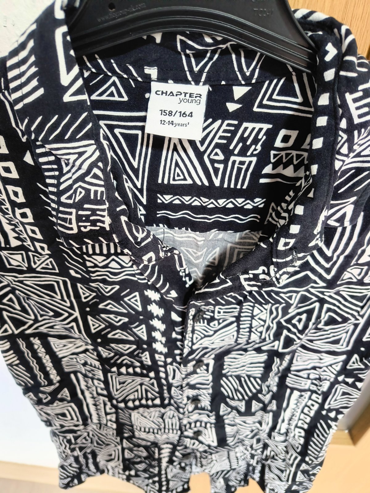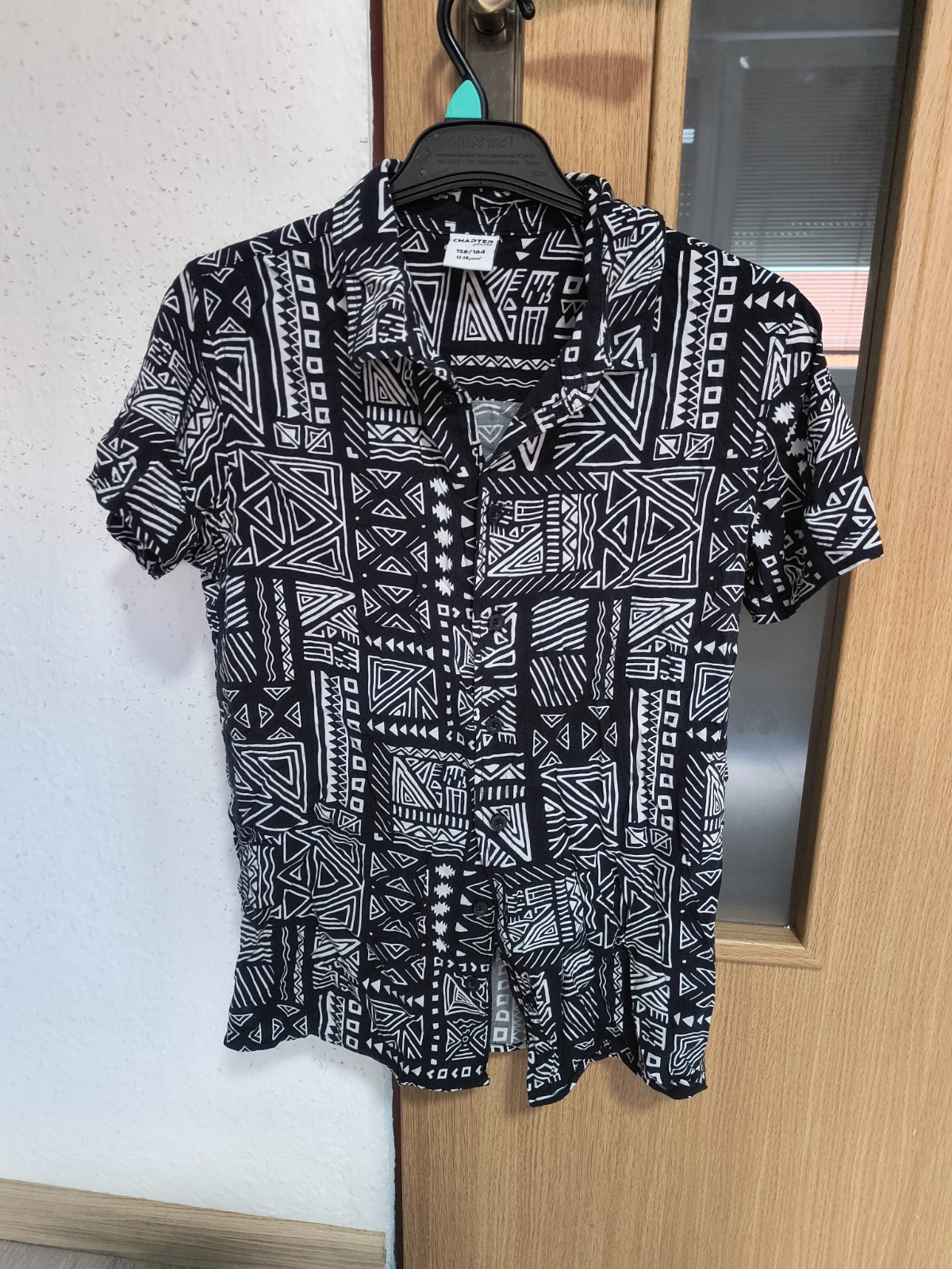 Predám košeľu vel;158/164/12/14,nosena bez poškodenia,100%bavlna.dlžka od golierika nadol 62cm,golierik 7cm,šírka 47cm,rukáv od pleca 64cm.cena je 3,00