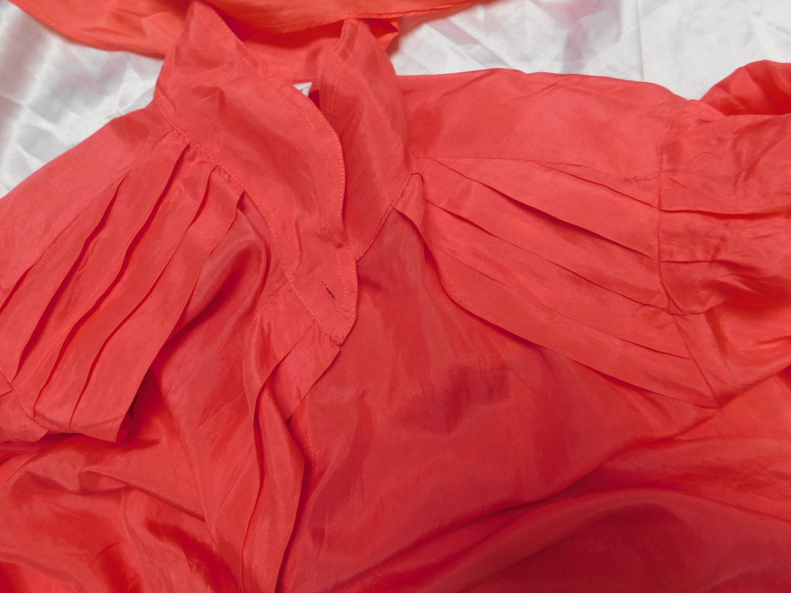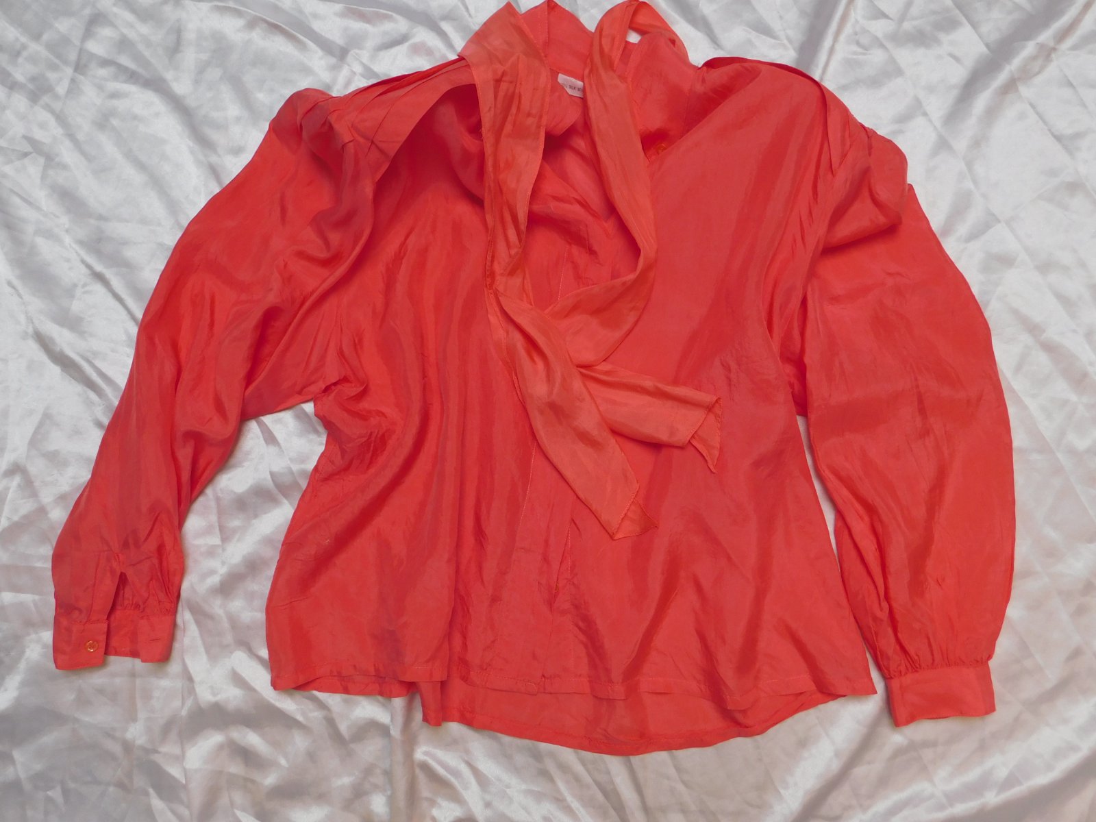 Pekna lahučka hodvabna bluzka lososovej farby.100%silk.super stav. m