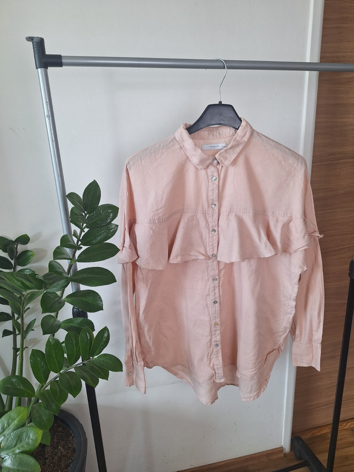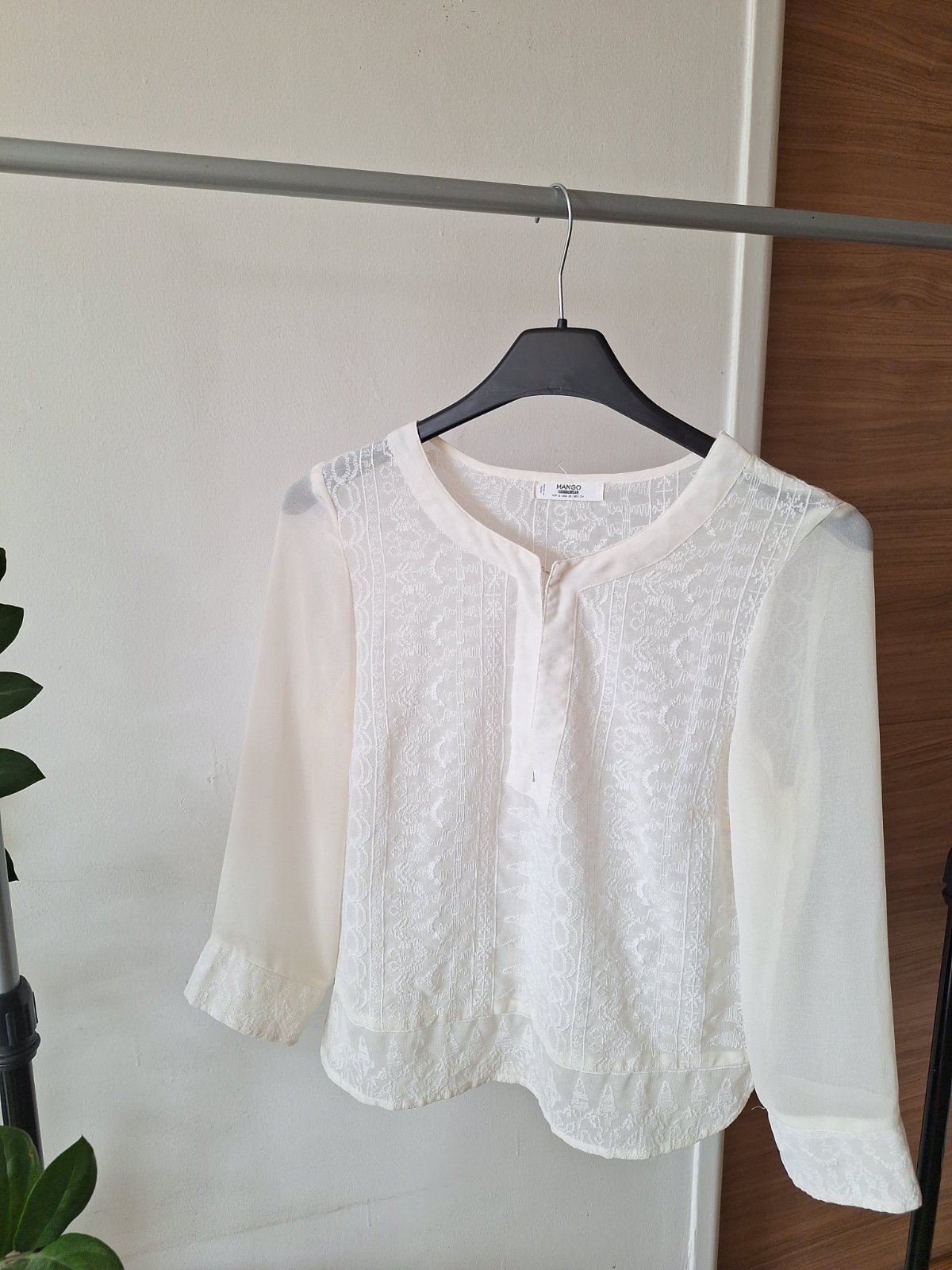 Mango v peknom nosenom stave, šírka pod pazuchami 2x49cm, dlžka od ramena 56cm, materiál je málinko priehladný, žiaľ neviem zloženie, štítok som vystrihla, efektný predný die