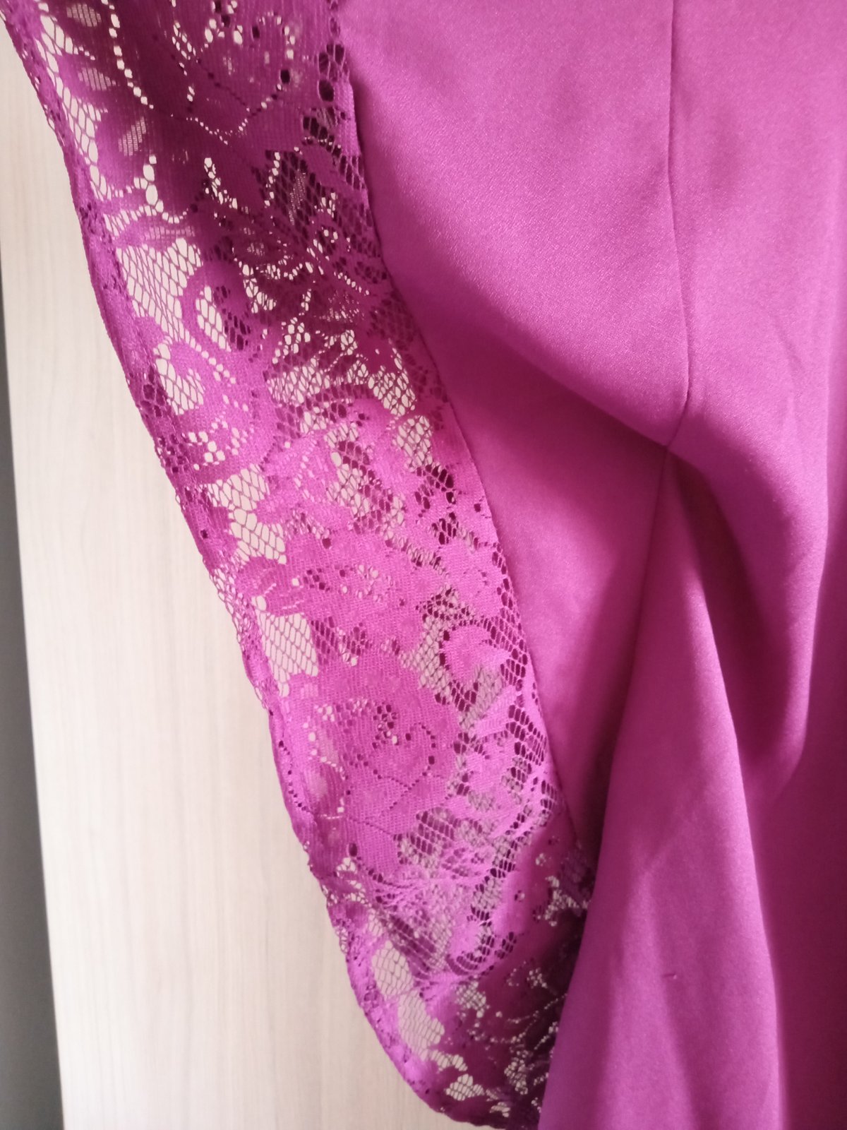 jemné plátenko, jemné odtiene fialovej vás rozžiaria, miery: pod pazuchami 48x2, pás 42x2, boky 50x2, dĺžka 60cm, poštovné a balné 1 €