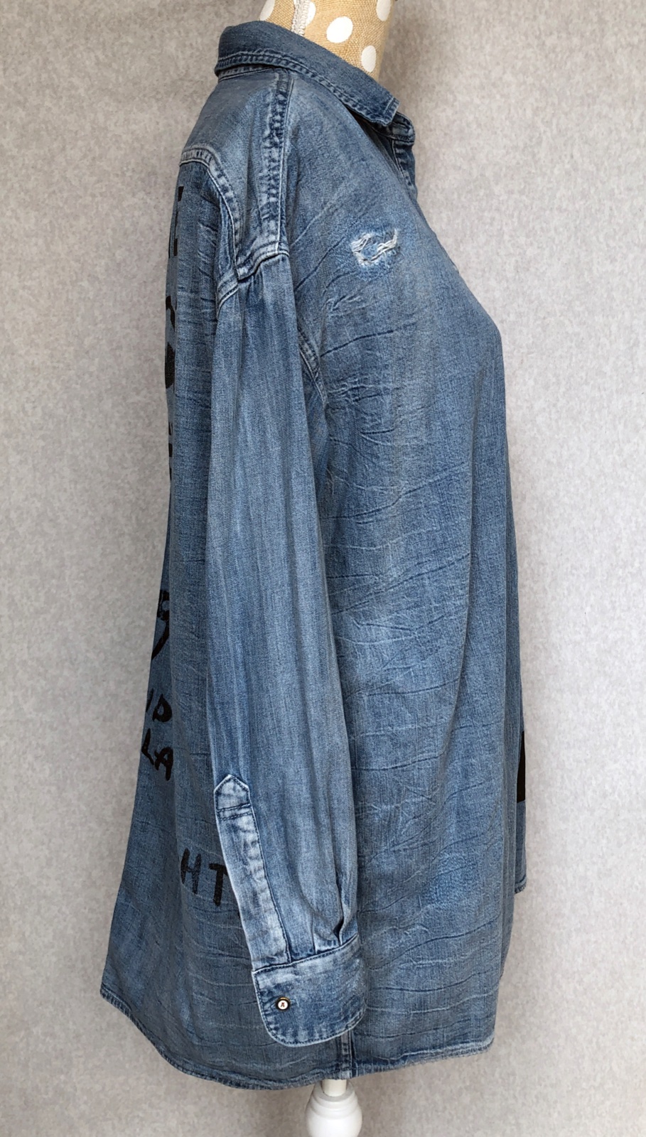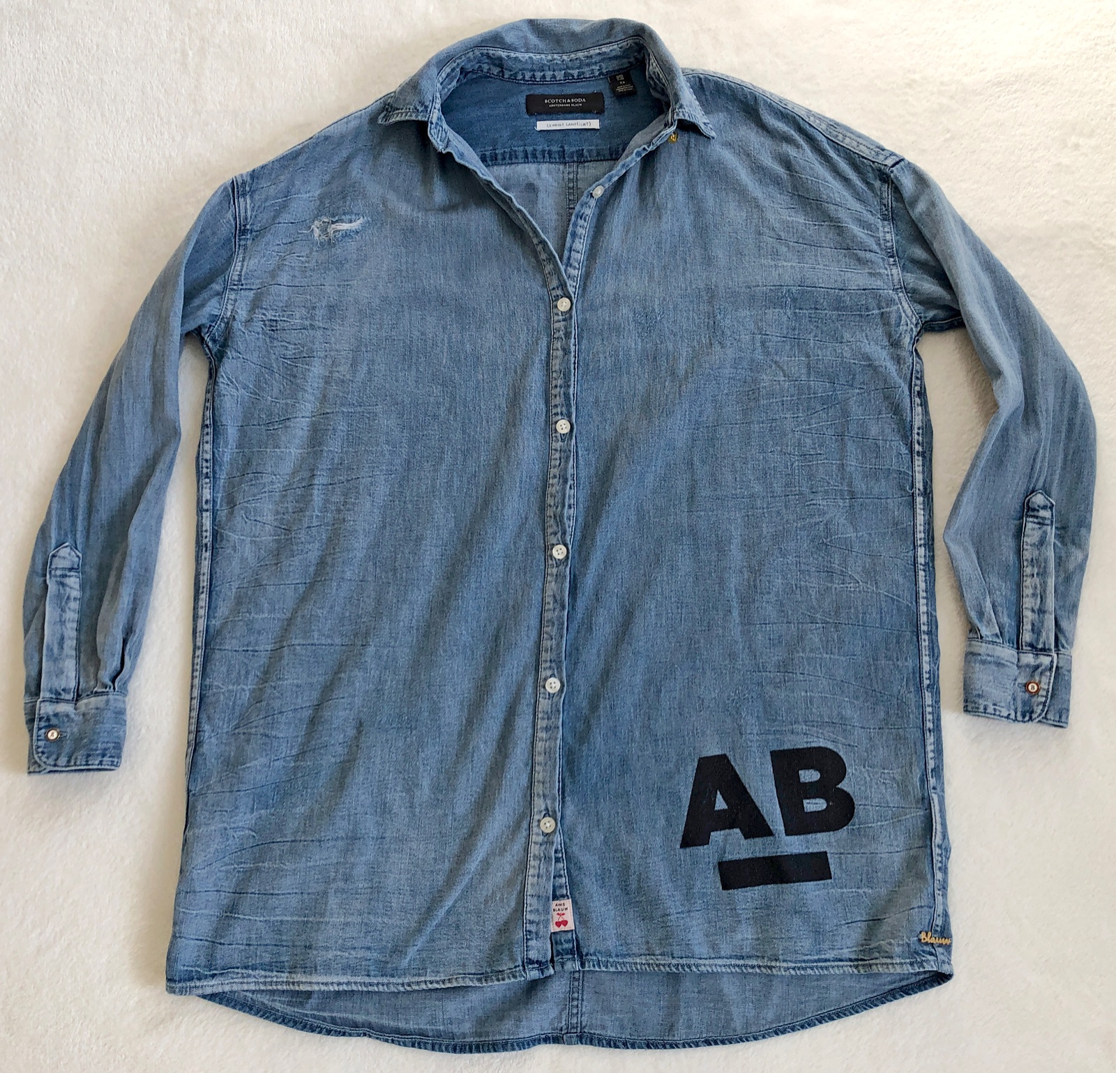 Štýlová košeľa zo super mäkkulinkej rifľoviny obľúbenej dizajnérskej holandskej značky Scotch and Soda. Minimálne použitie - ošúchané miesta a vyblednutý vzhľad patria k štýlu košele, bola takto originál od kúpy. PC 189,95 Eur