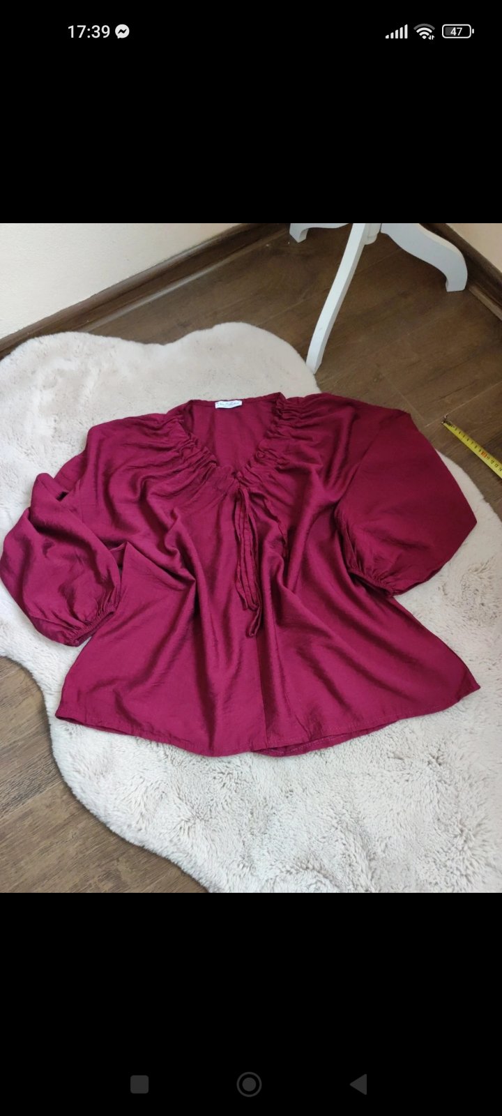Predám krásnu bordovú blúzku s 3 brošňami, materiál satén, na gombíky, prekrásna, mne veľká, úplne nová, dá sa s opaskom, rôzne, sadne od M-XL, rozmery: 67 cm prsia, 71 cm dĺžka, TOPKA.