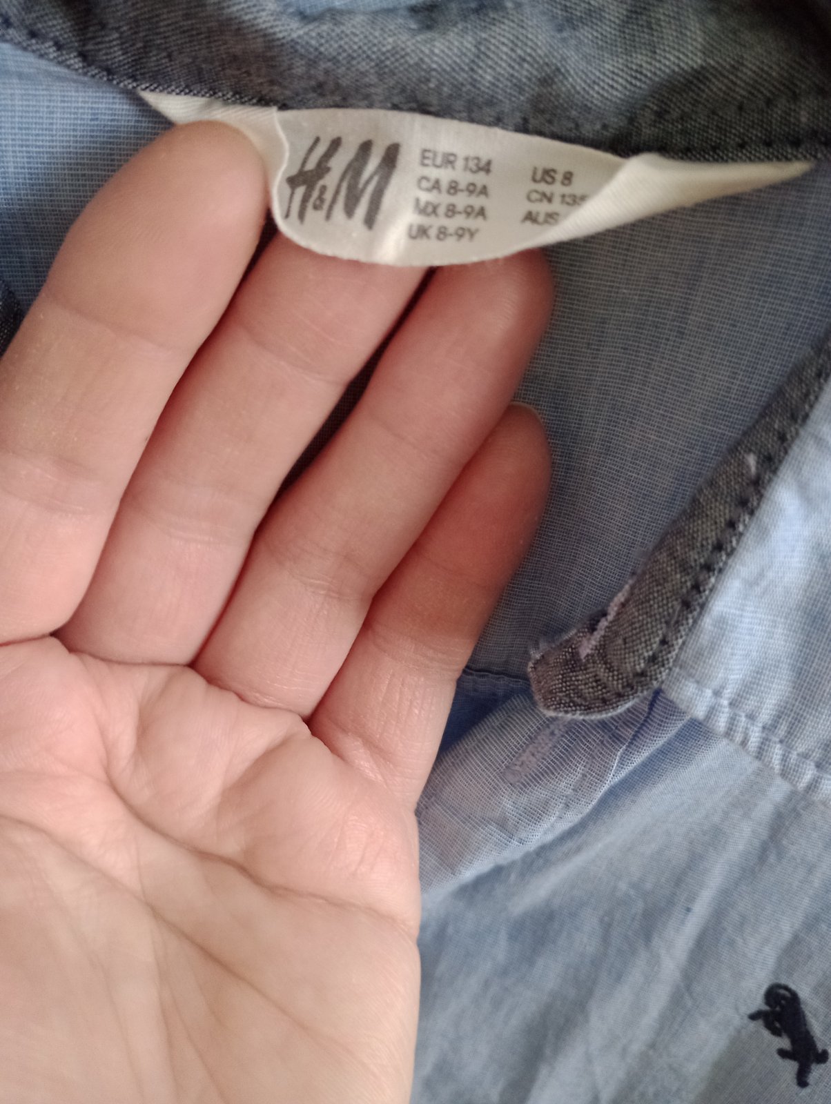 Zachovalá košeľa H&M. Veľkosť 134 čiže na 8-9 rokov. Rukáv od krku je 57 cm a dĺžka je 53,5 cm. Cena 2,50 eura.