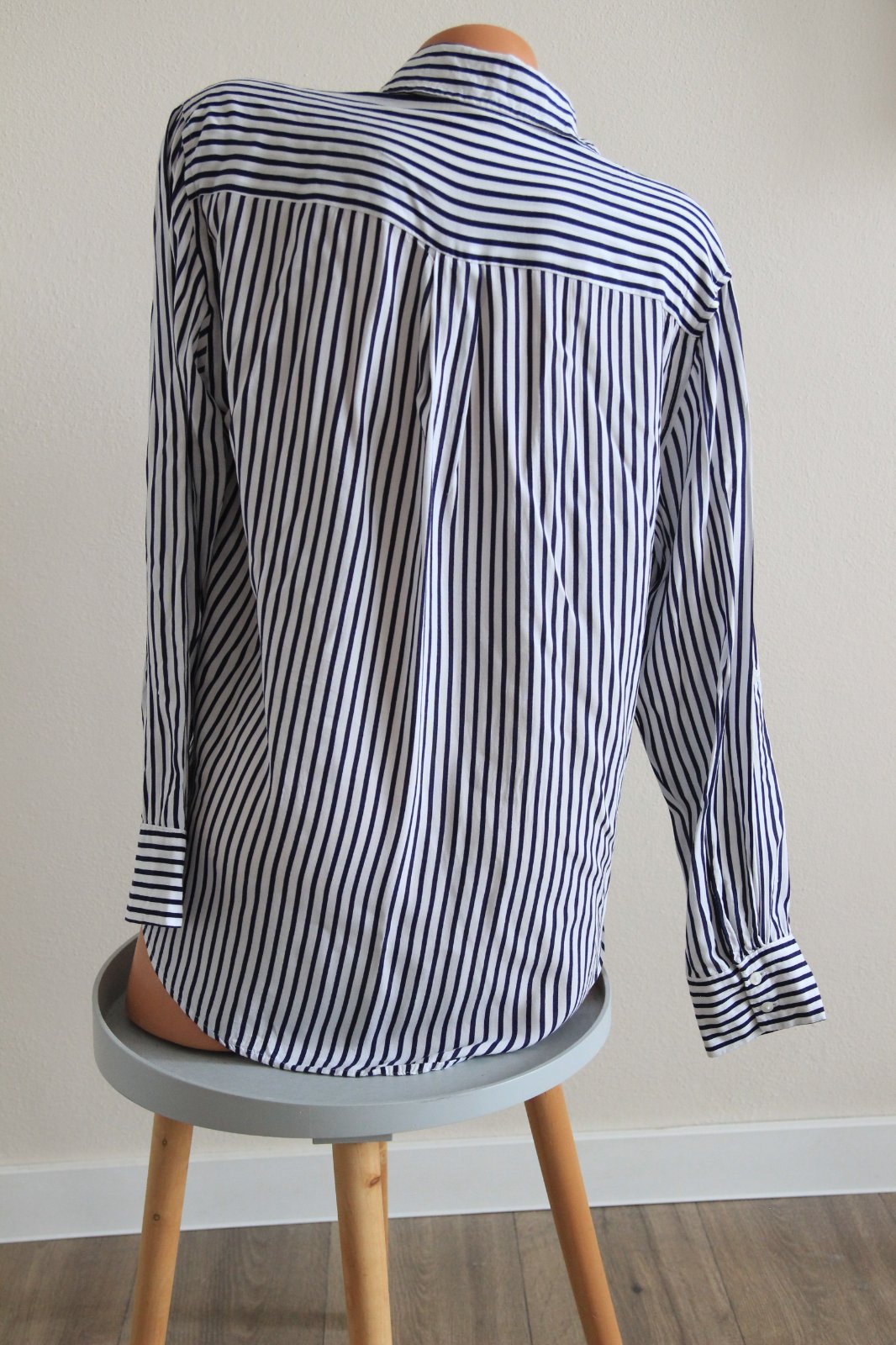 Modro biela viskózová pásikavá košeľa, veľkosť L/XL. Top stav.