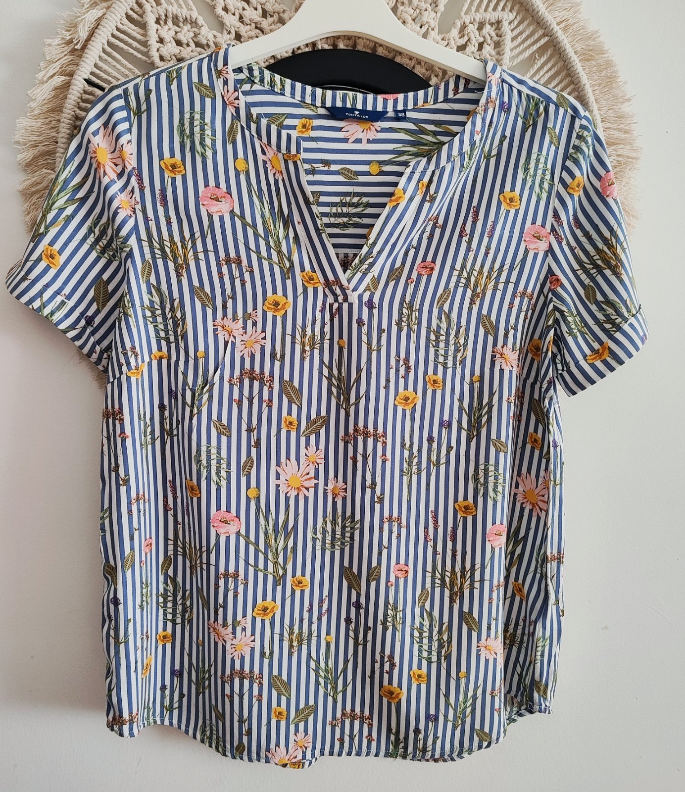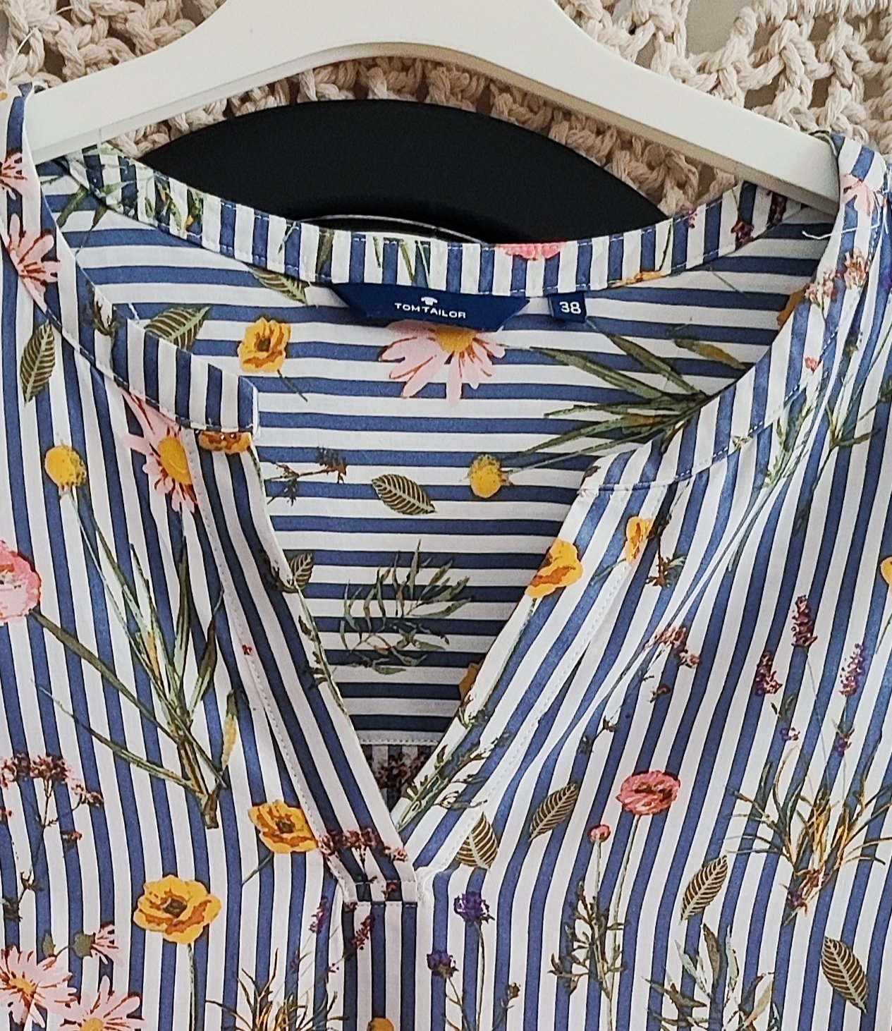 Peknu min.nosenu tmavomodro-bielu bluzku Tom Tailor, vel.40, sedi na M/L - vid foto--rozmery
