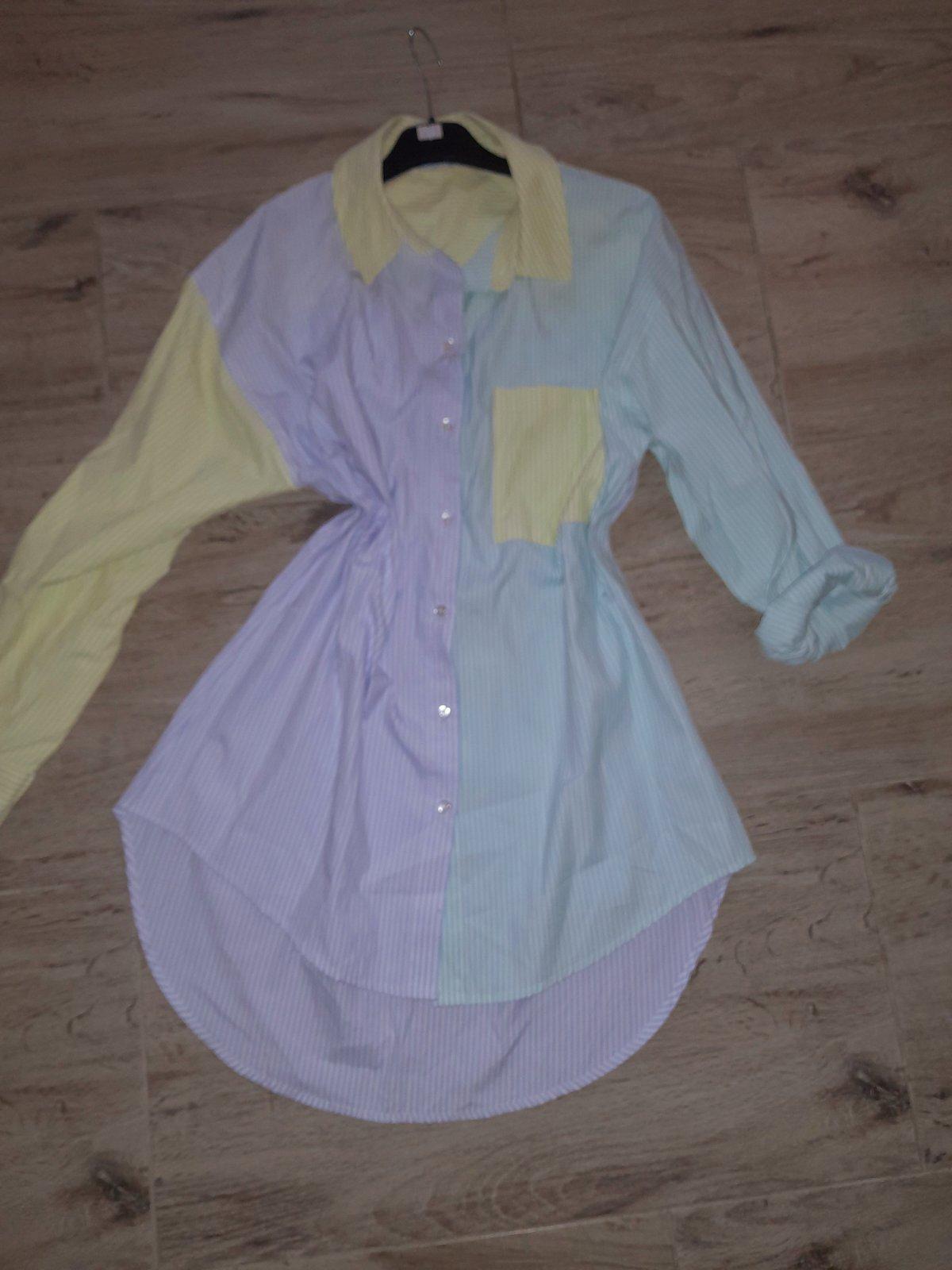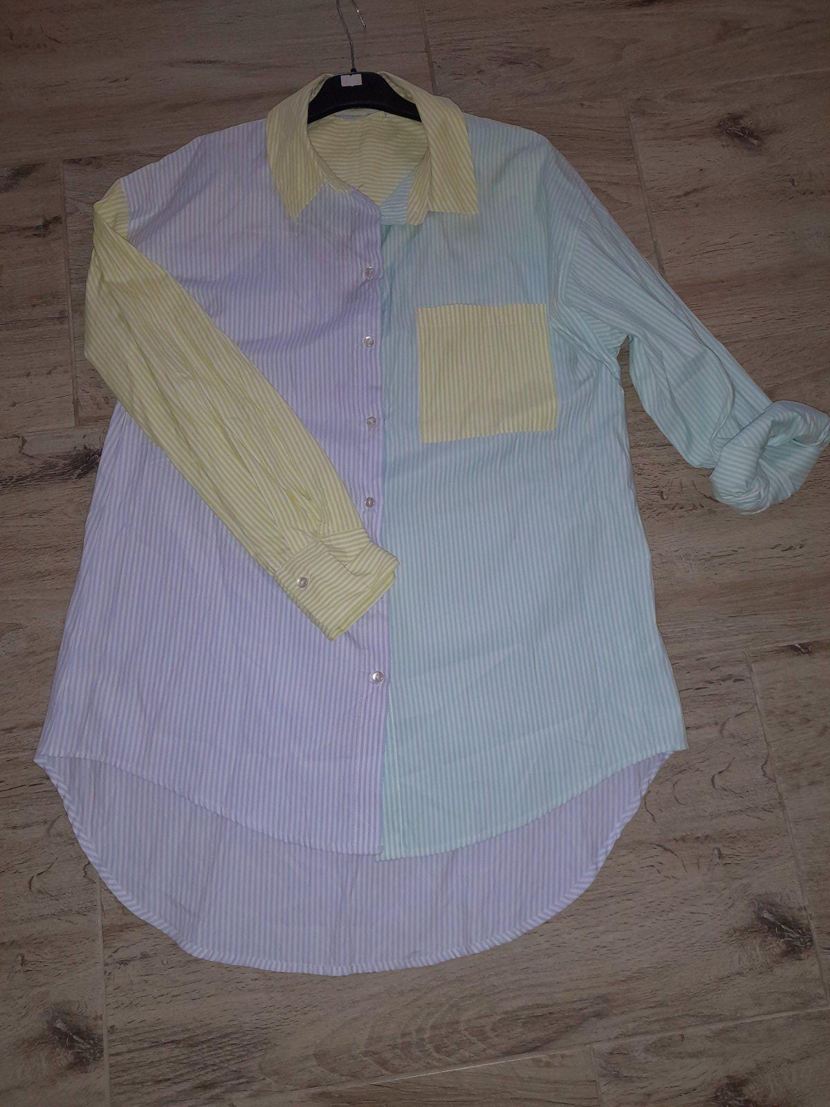 Predám peknú predĺženú košeľu, mierne oversize strih. Nosena,v super stave.Tenke prúžky.