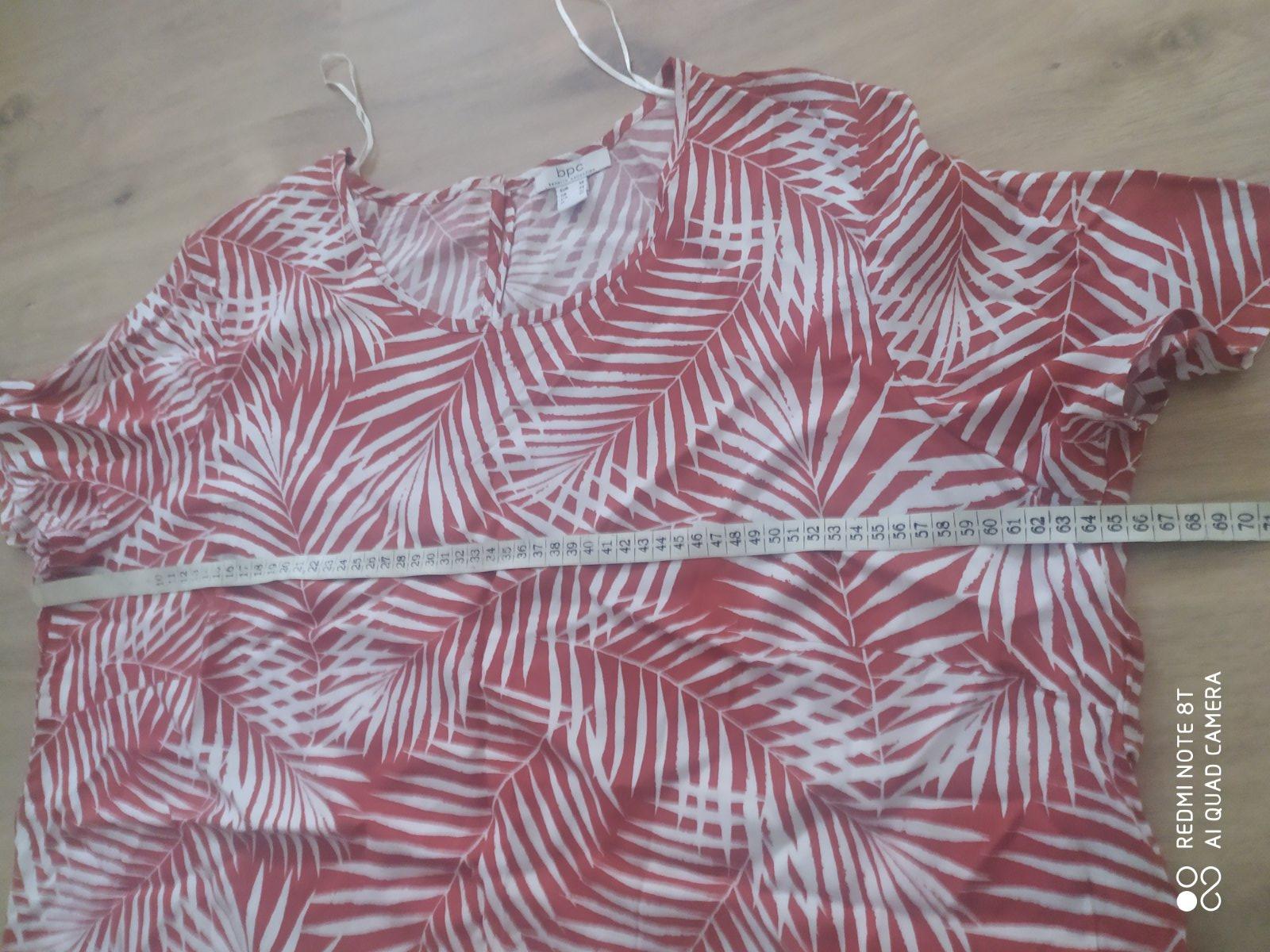Kvetovaná blúzka, veľkosť 50, značka Bodyflirt, len opraná. Rozmery: - šírka podpazušia: 2 x 66 cm v kľude, povolí na 2 x 75cm - pás: 2 x 68 cm v kľude, povolí na 2 x 74 cm - dĺžka: 66 cm