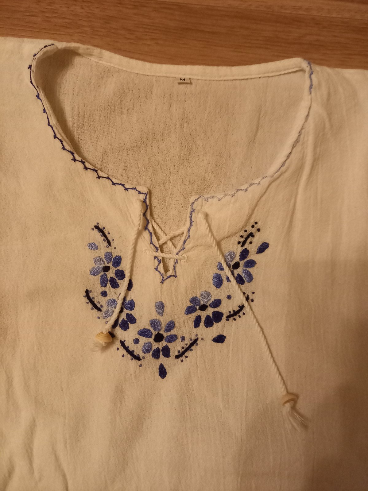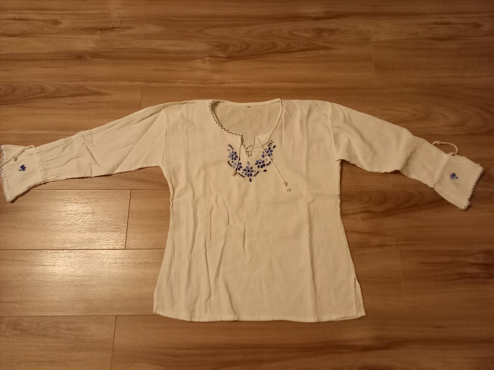 2x Biele bavlnené blúzky s ručne vyšívaným motívom č.M. Nenosené, bez poškodenia. Cena za kus 10€ plus poštovné. Na dobierku neposielam.