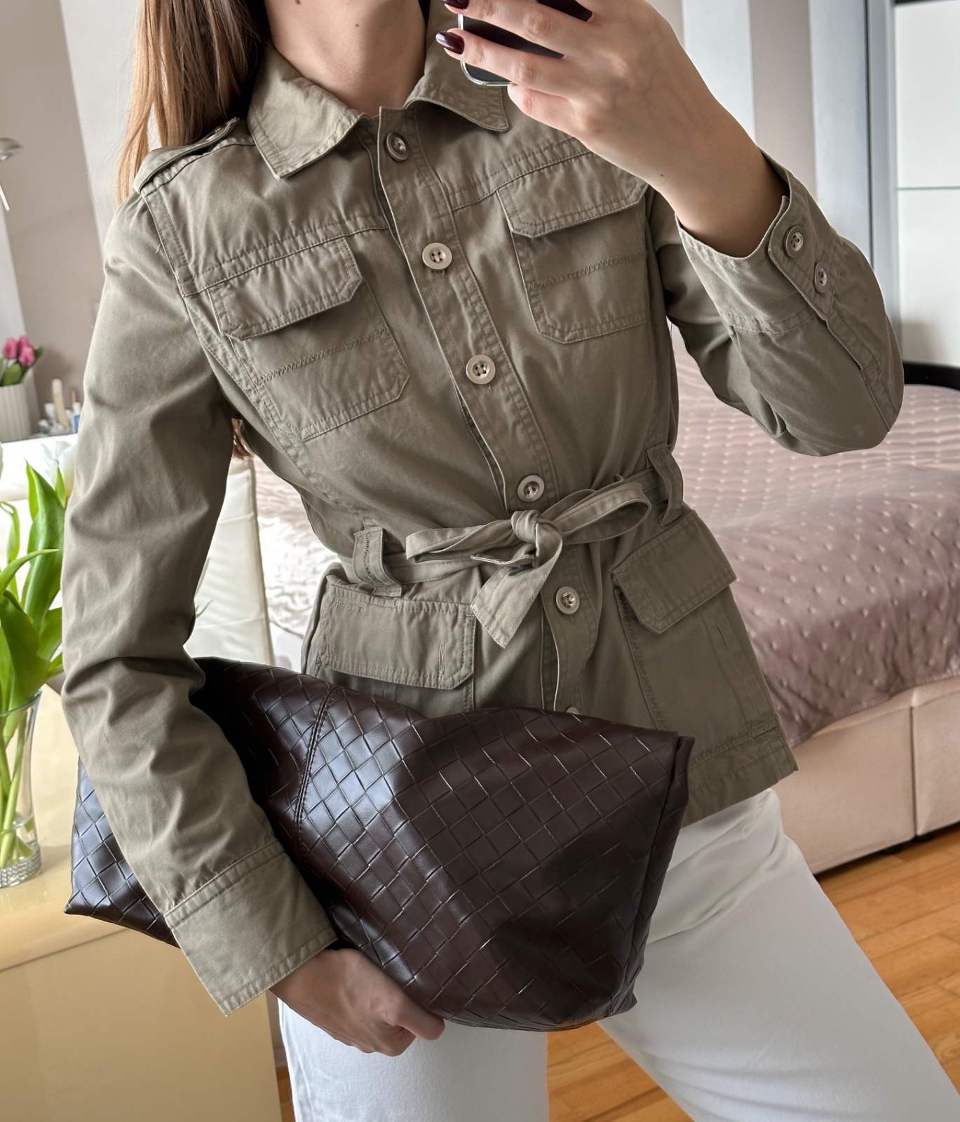 Viral štýlová vrchná khaki košeľa s opaskom