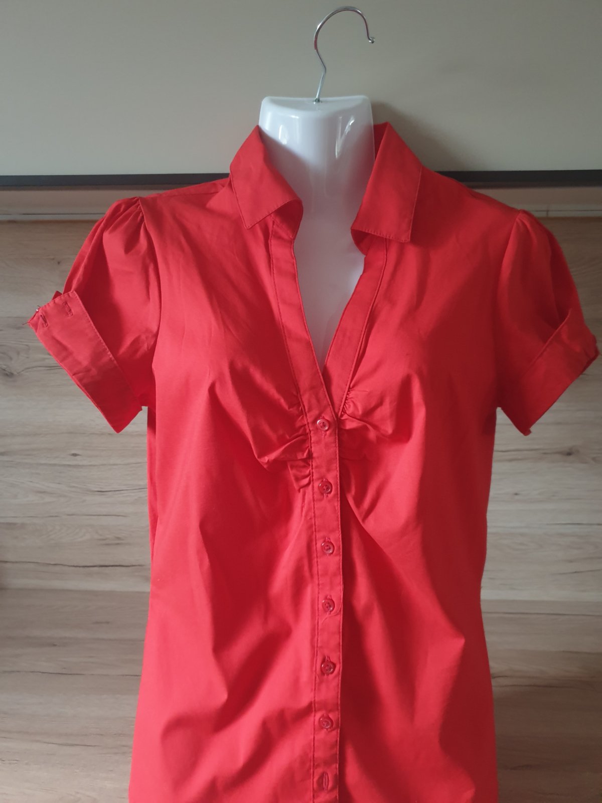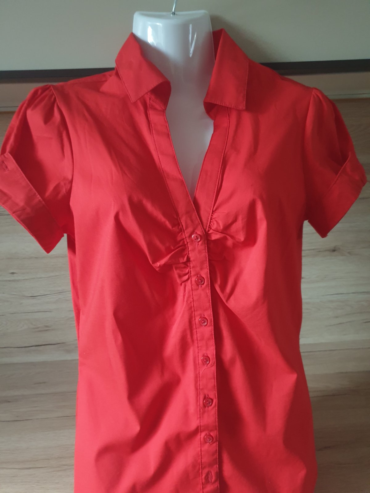 10/9 Veľ: 38 US 8 Mat: 73% bavlna, 3% elastan, 24% polyamyd Prúžkovaná blúzka zn. H&M je červeno bielej farby s kr. rukávom. Mierne zoštíhlená. Málo nosená, pár krát oblečená. V 100% stave, bez fľ...
