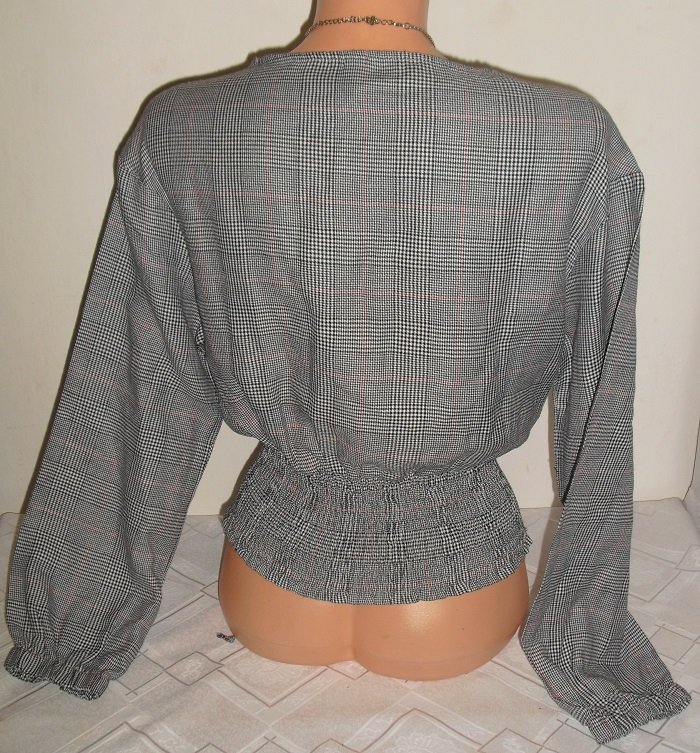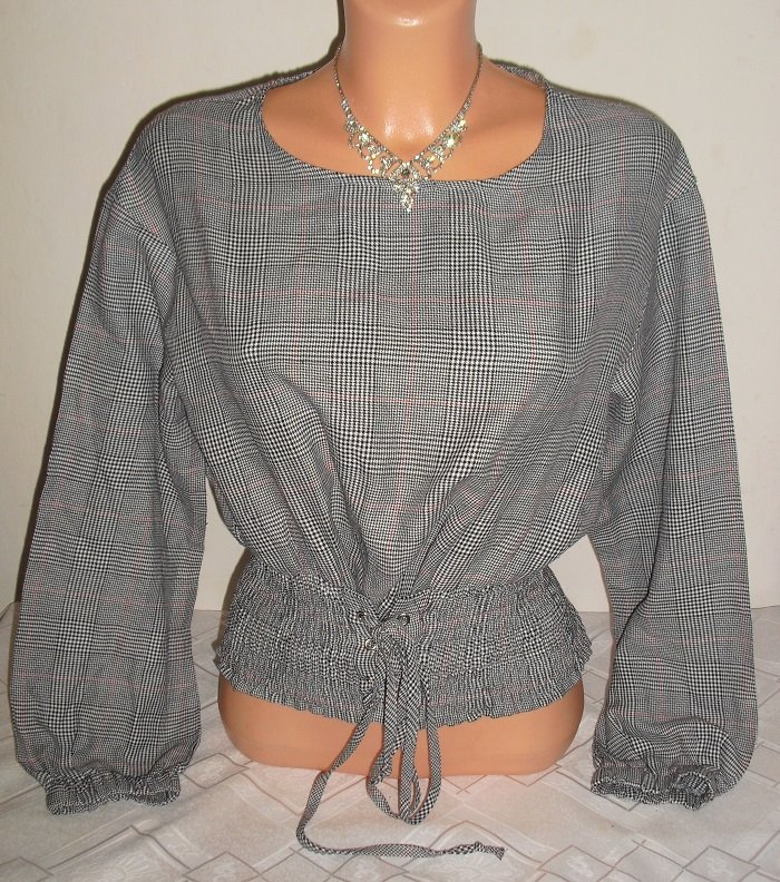 predam nadhernu elegantnu bussines bluzocku, znackova fb sister, velkost uvedena xs, ale ide aj na s, s/m. nosi sa hore navolno padavo na tele a v pase je nariasena a polohovatelna na zostihlenie pase korzetovym viazanim. nadhernom vybornom stave, sirka misu byt hore sirsie volnejsie 50 cm x 2, dlzka 51 cm, dole pas klude bez nadstavenie sirka 28 cm x 2 natiahne viac.