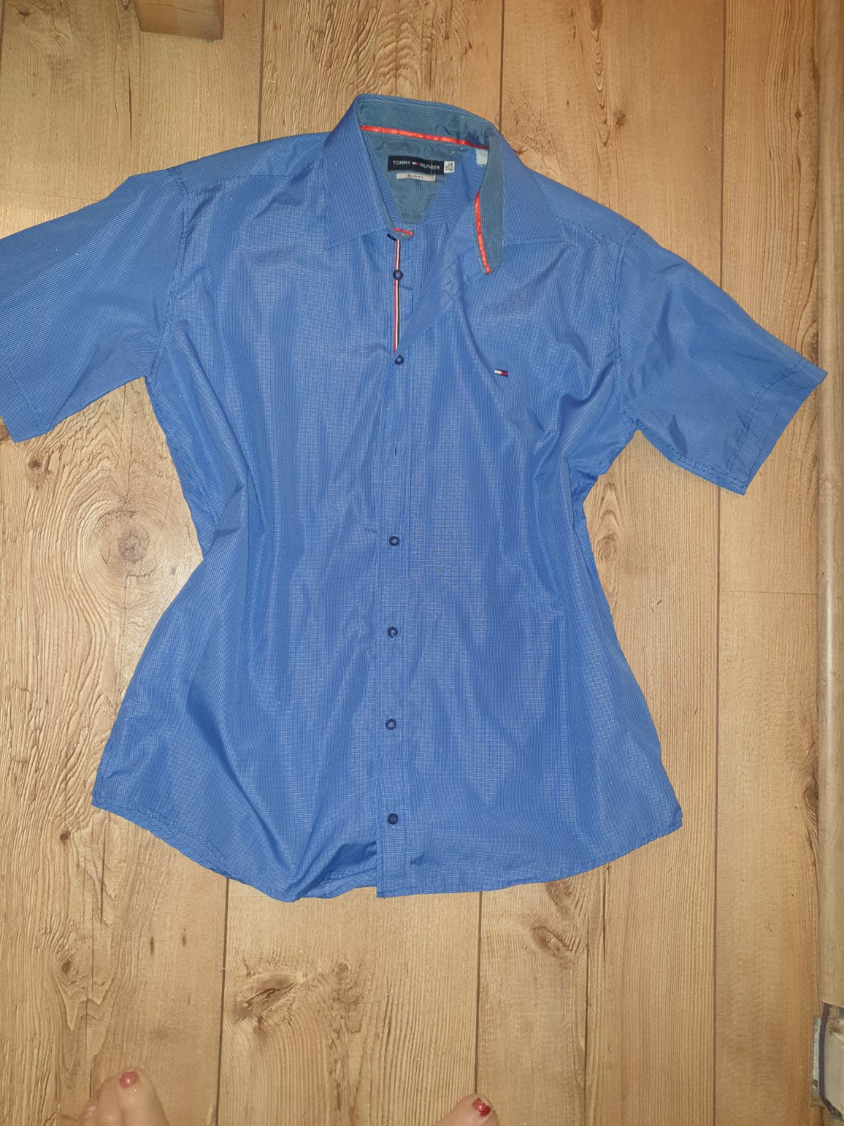Predám nosenú, ale bez závad originál pánsku košeľu zn. TOMMY HILFIGER. Veľkosť L, v prípade záujmu, rada premeriam. Cena 15 eur + poštovné.