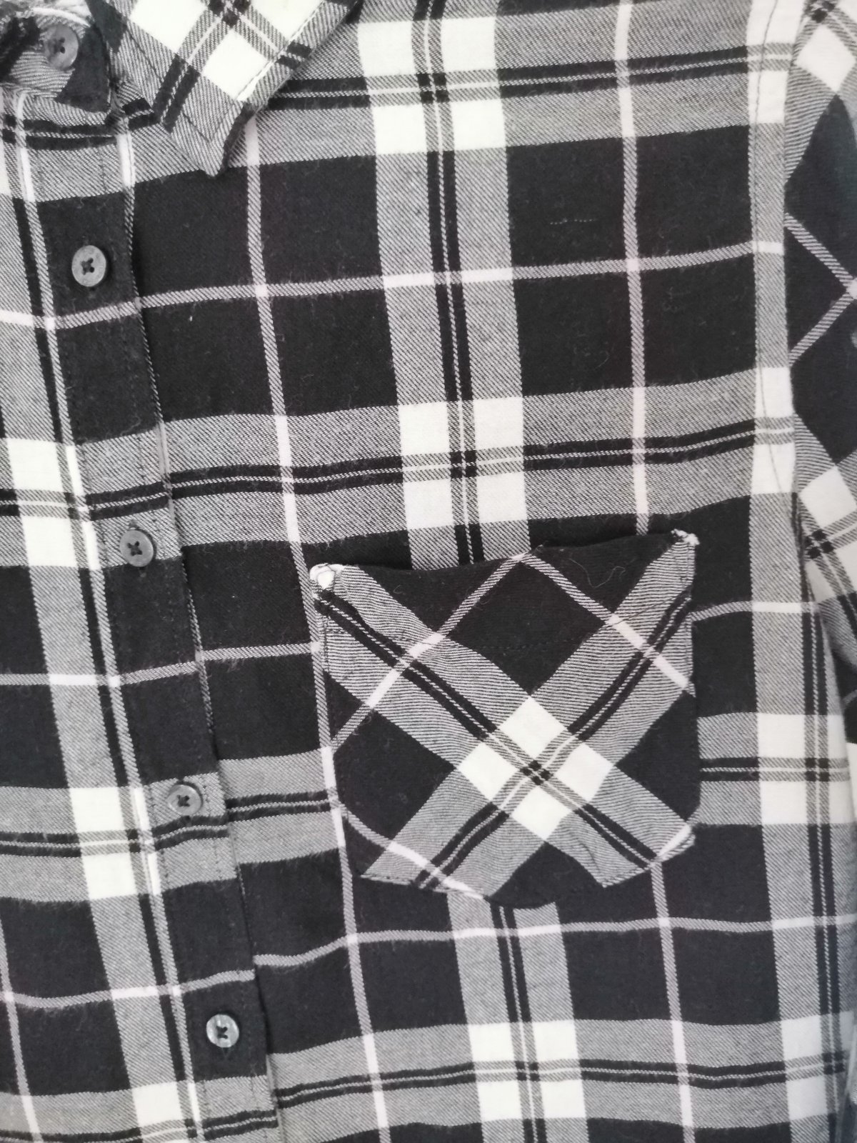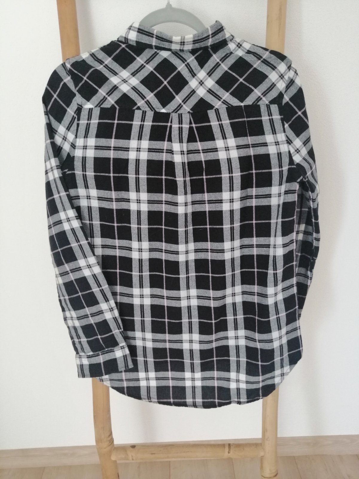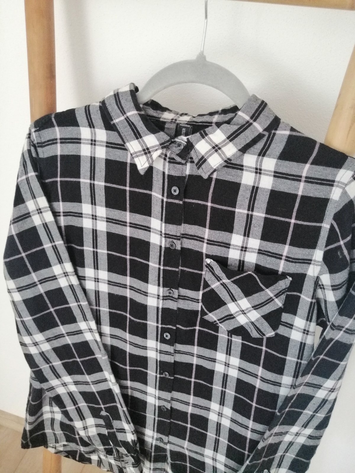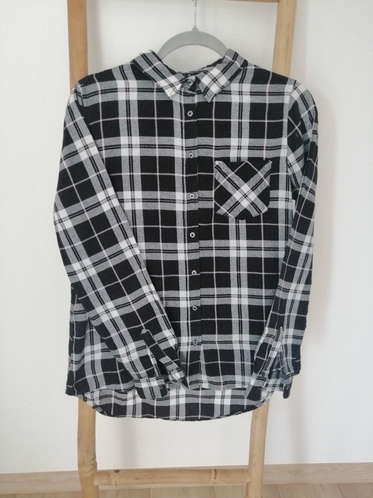 Dámska károvaná košeľa vo veľmi peknom stave. Košeľa bola nosená minimálne, nemá žiadne známky poškodenia.