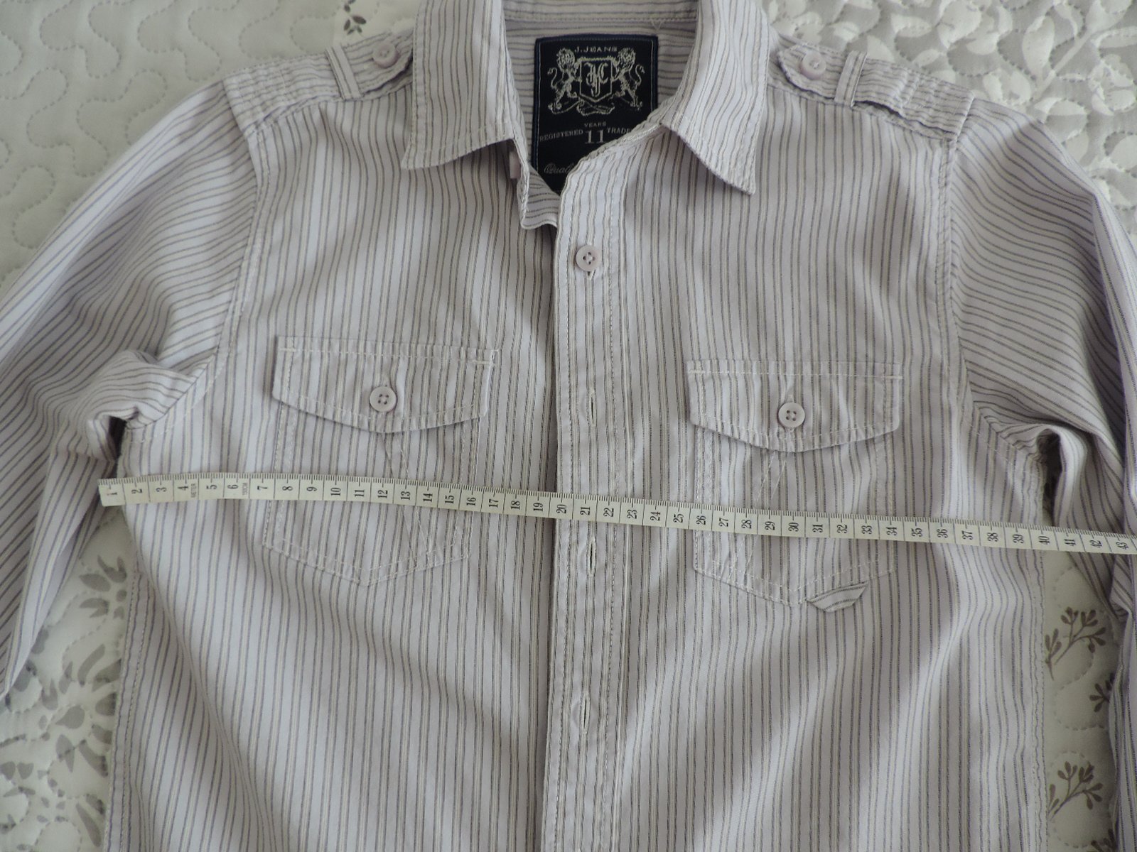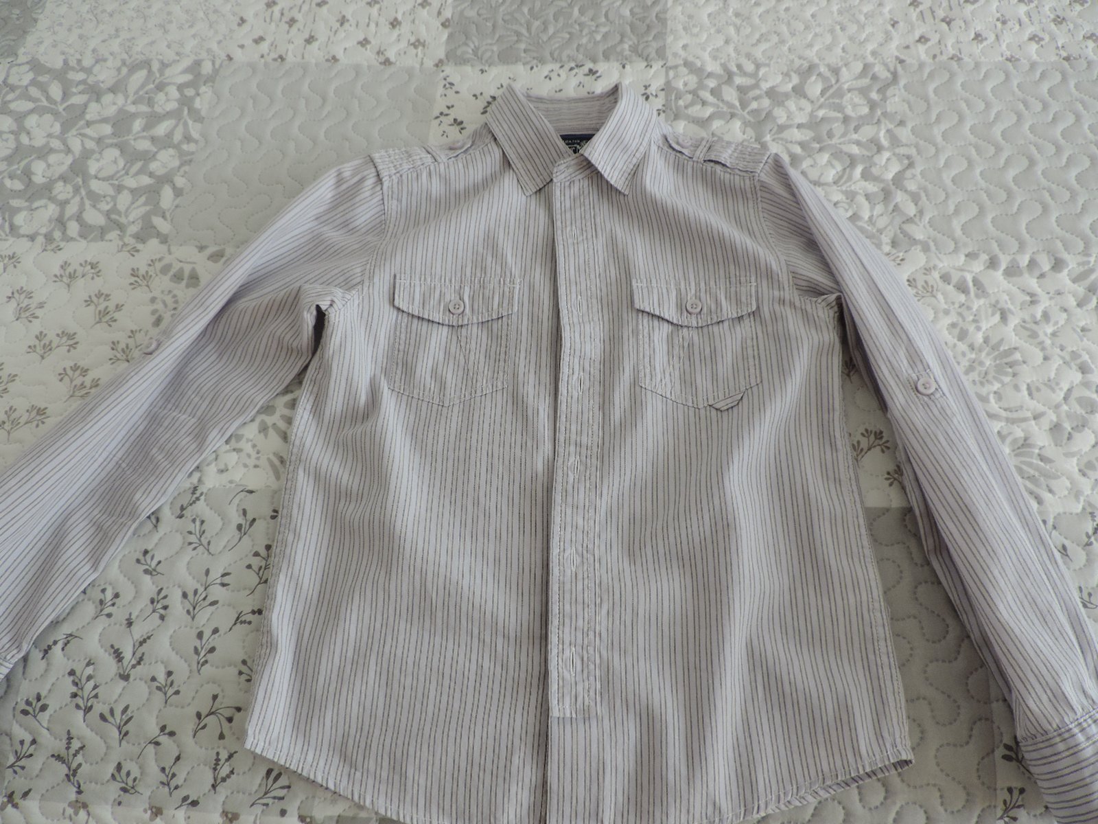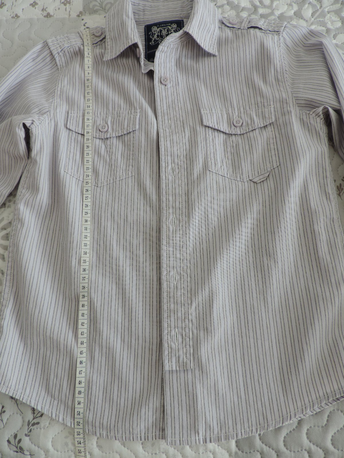 Príjemná košieľka pre chlapca, vhodná pokojne do školy (na fotenie). Riaďte sa prosím rozmermi na fotkách (podľa mňa veľkostne niečo medzi 134/140). Pekný nosený stav, no ešte urobí veľa parády. Má zopár prepracovaných detailov, vrátane "roll up" rukávov. Z nefajčiarskej domácnosti. Vďaka za nahliadnutie!