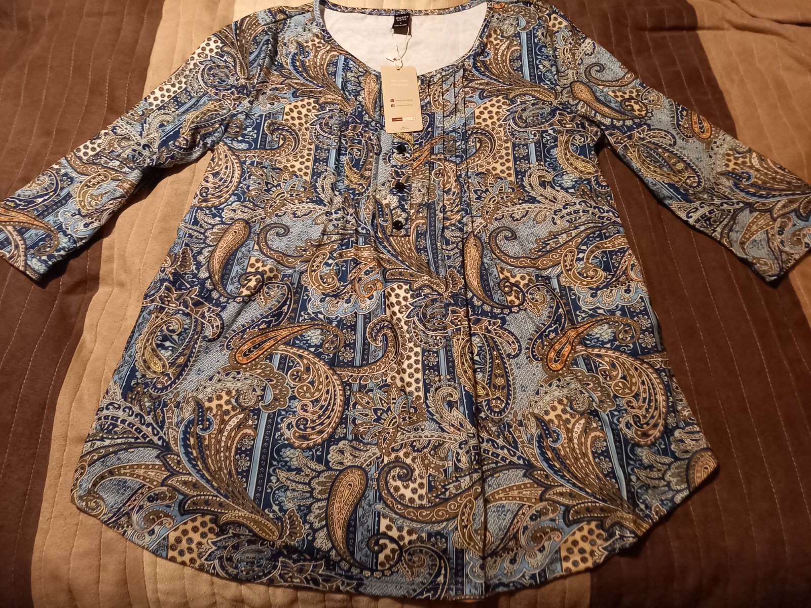 Krásny dánsky top. Nový, bez poškodenia. Rozmery: dlžka 71 cm a prsia 106cm. Cena 5€ plus poštovné. Na dobierku neposielam.