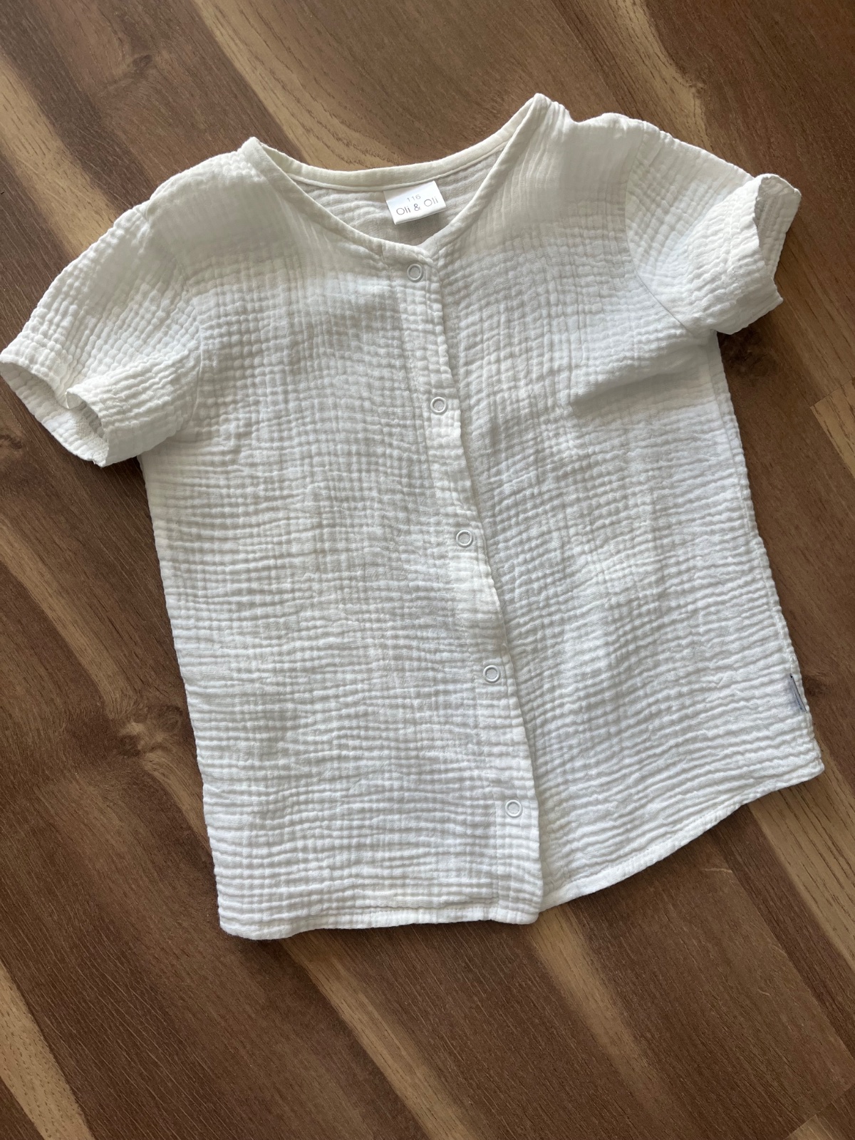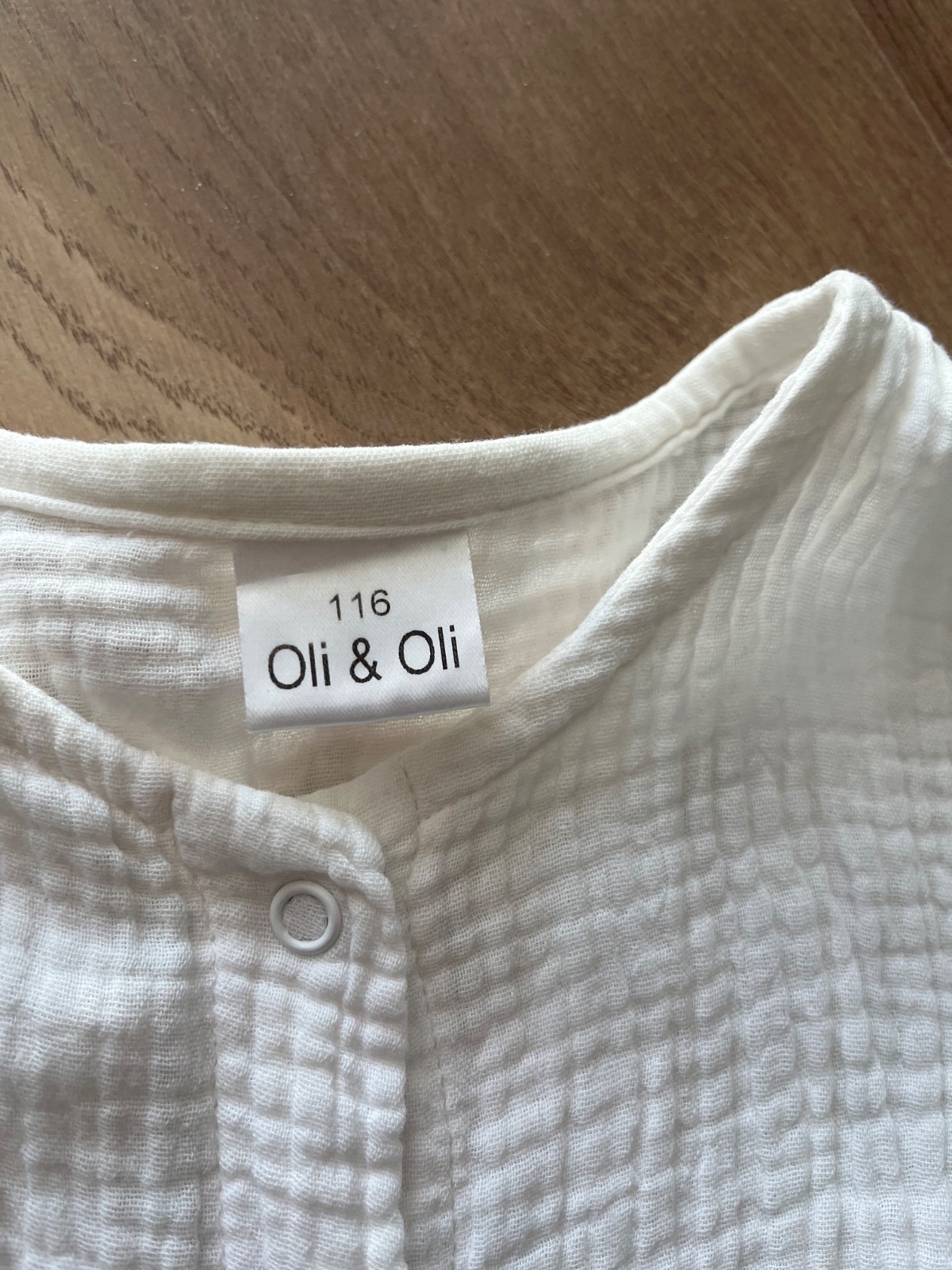 Mušelínová košela slovenskej značky Oli&Oli, ľahký mäkký materiál, zapínanie na cvoky. Párkrát oblečená (máme ich viac na striedanie). Veľkosť 116, sedí veľkostne.