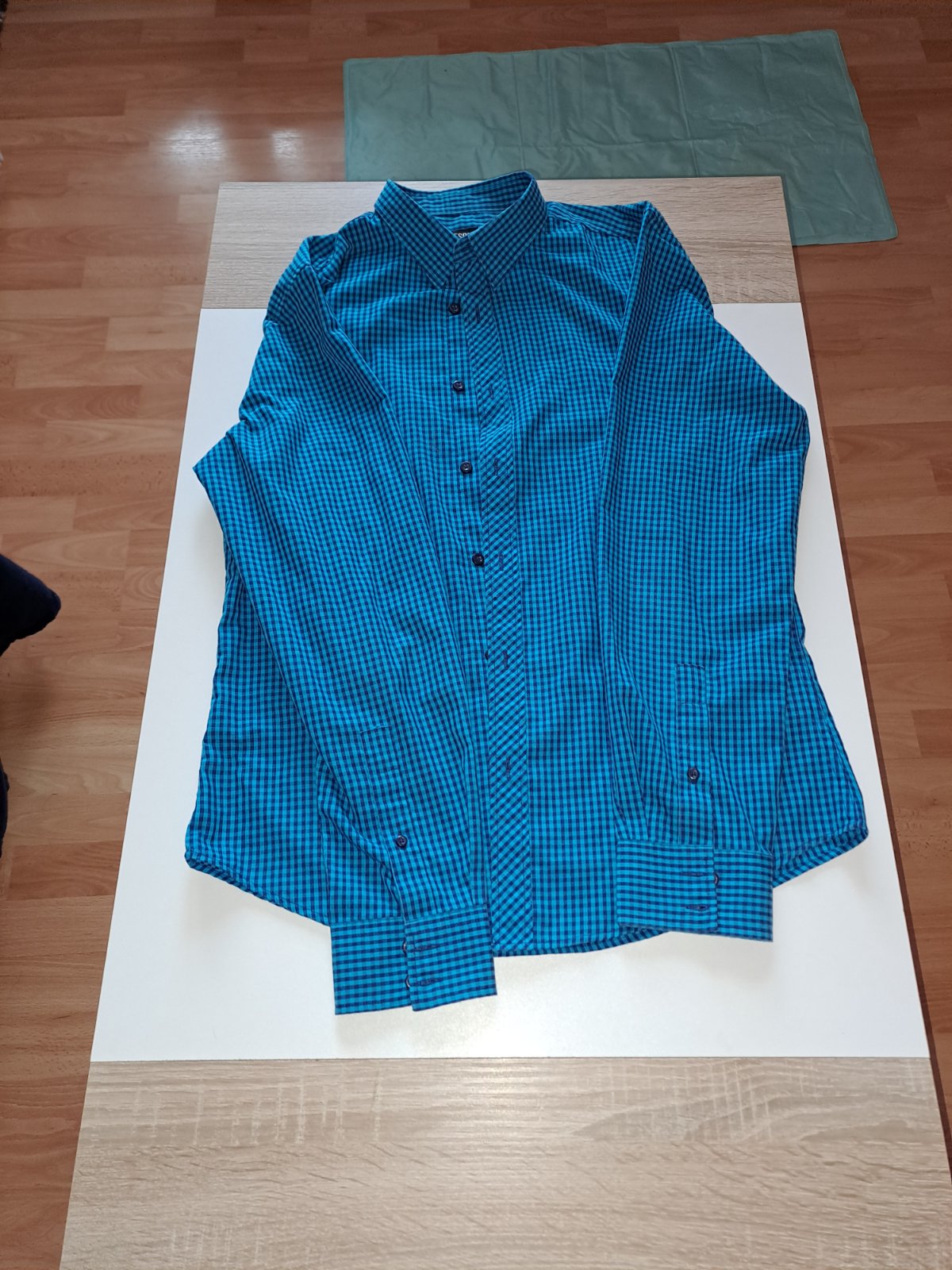 Predám košeľu vel:l,nosena bez poškodenia.dlžka od goliera nadol 69cm,golierik 6cm,šírka 51cm,rukáv od pleca 68cm.cena je 3,00
