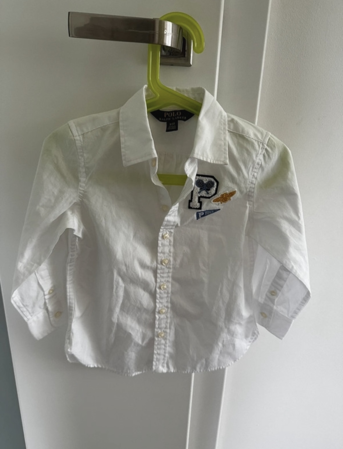 Nádherná košeľa, nenosená, Pólo Ralph Lauren,s veľktm logom, na lakťoch efektná nášivka čo dodáva košeli luxus