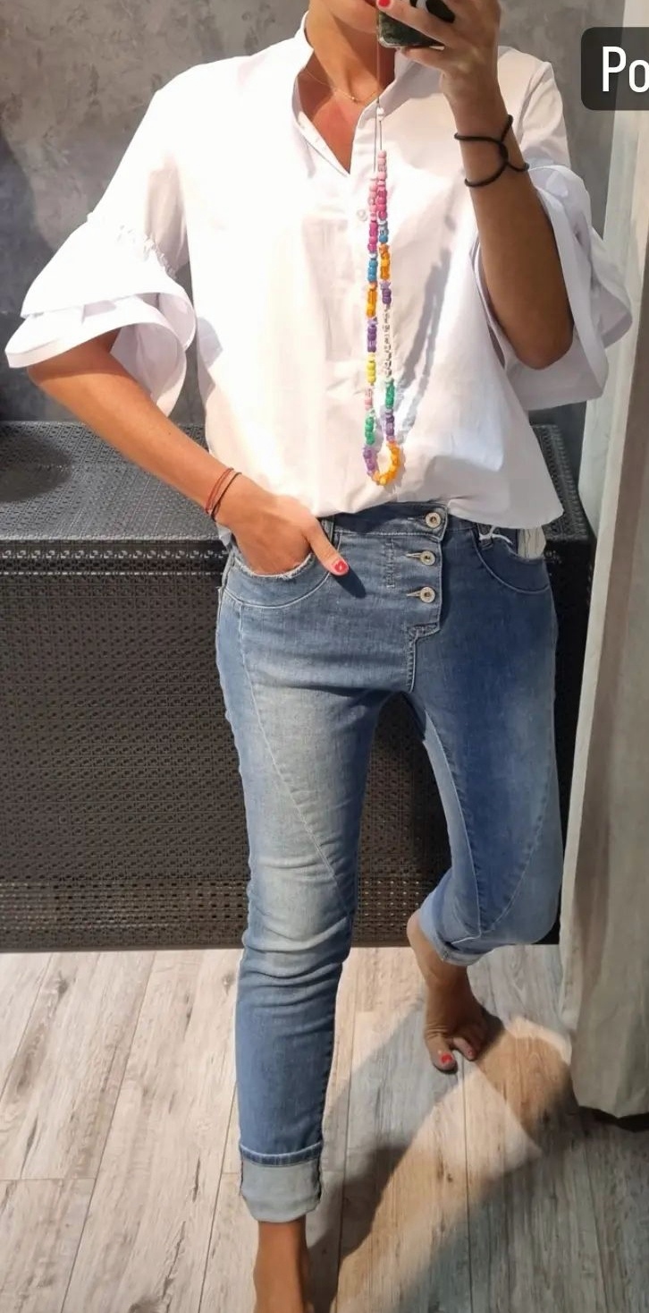 Predám túto kvalitnú a jedinečnú bielu košeľu talianskej značky Please. Má zaujímavé riasené rukávy. Veľkosť je S, pôvodná cena 89€.