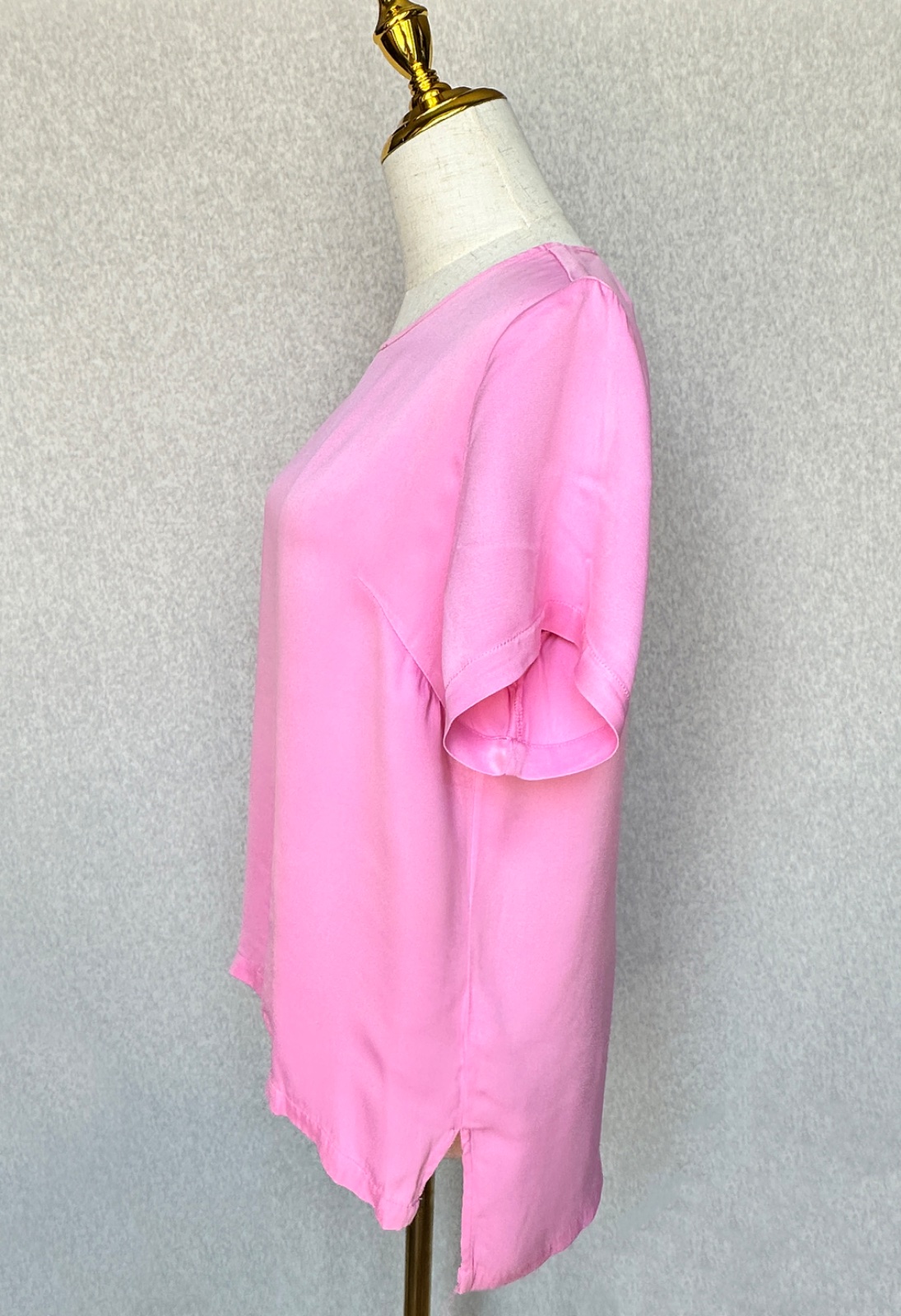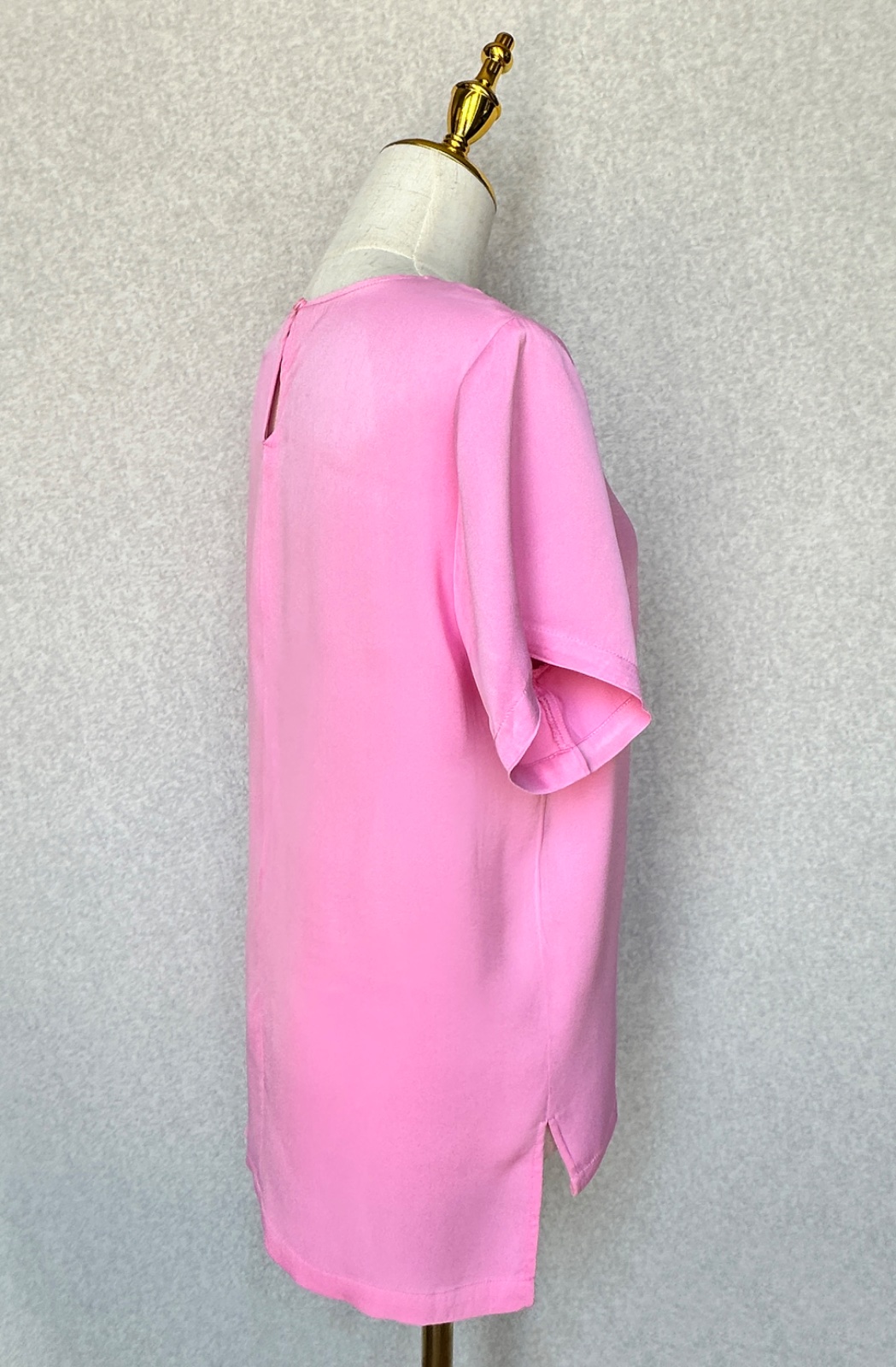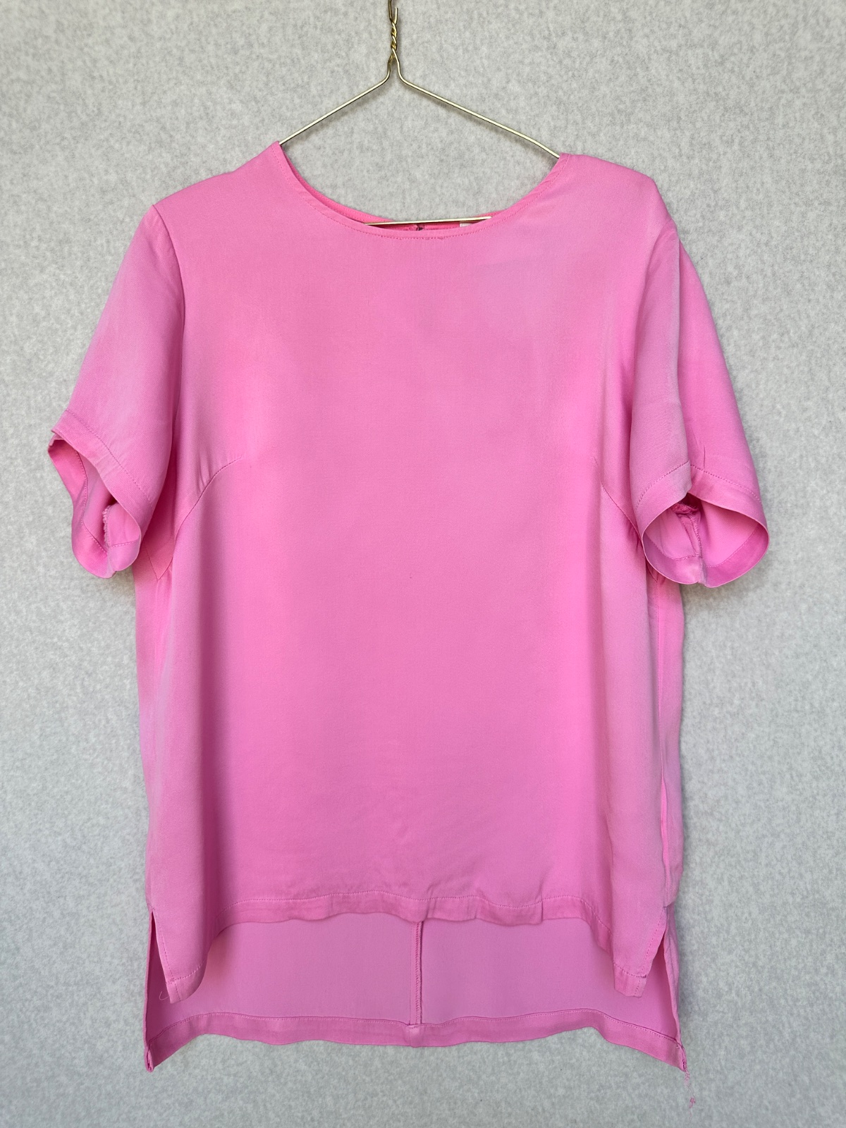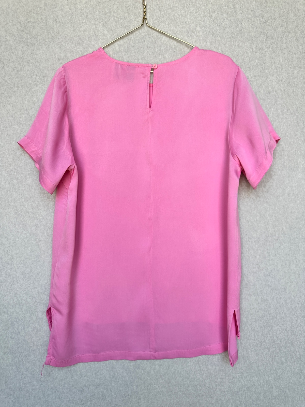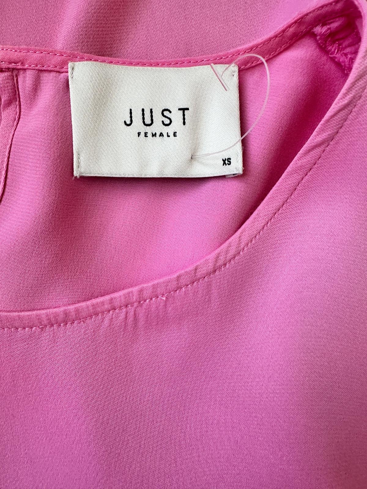 Exkluzívna blúzka z padavého hladkého materiálu s jemným leskom dánskej značky JUST Female, ktorá sa zameriava na moderné dámske oblečenie so zameraním na minimalistický škandinávsky dizajn. Žiarivá sýta ružová farba, zapínanie na gombík vzadu pod krkom,100% viskóza, pranie v rukách. Minimálne použitie, v super stave, bez poškodení. Uvedená veľkosť XS, sedí aj na S.