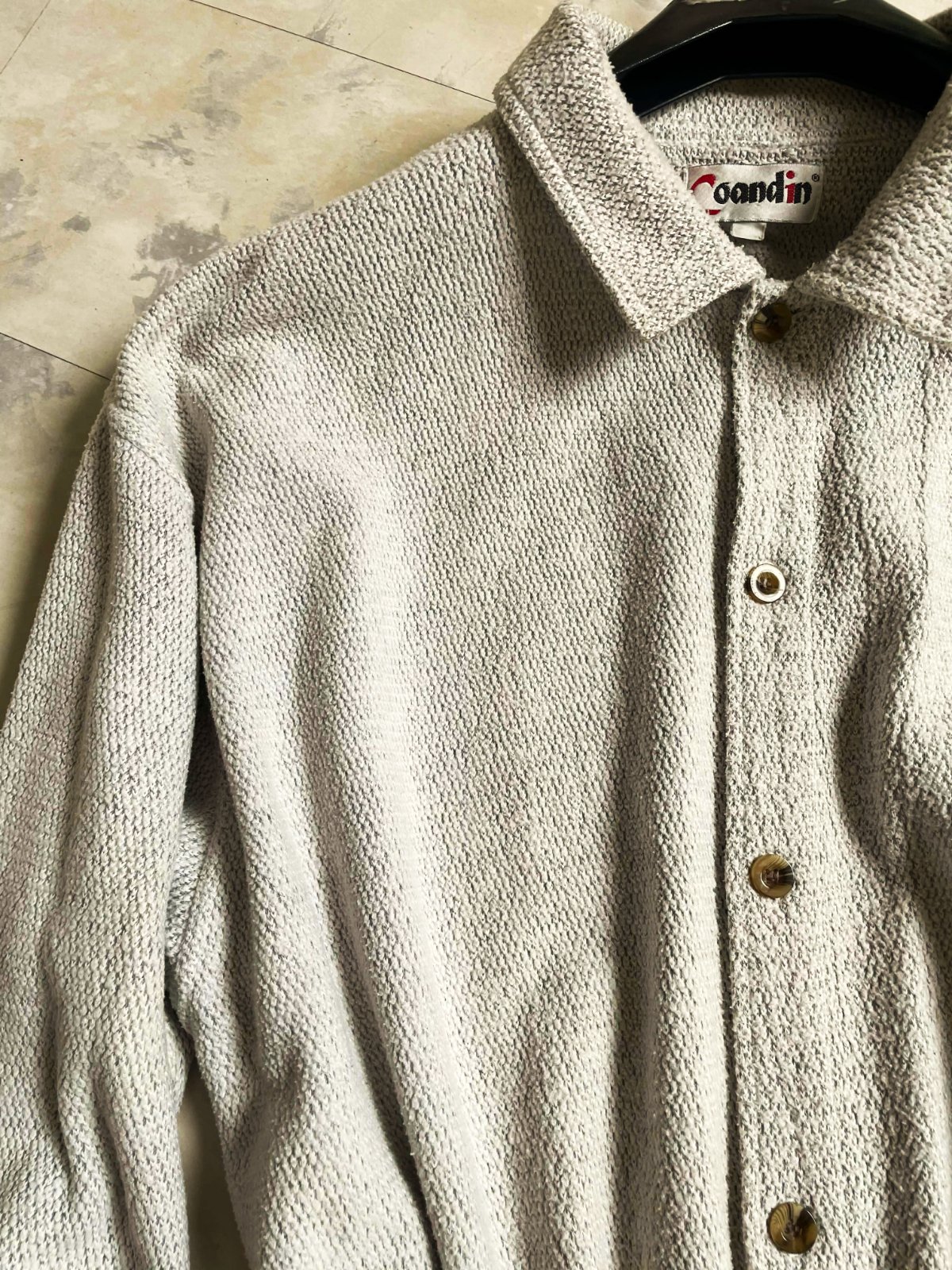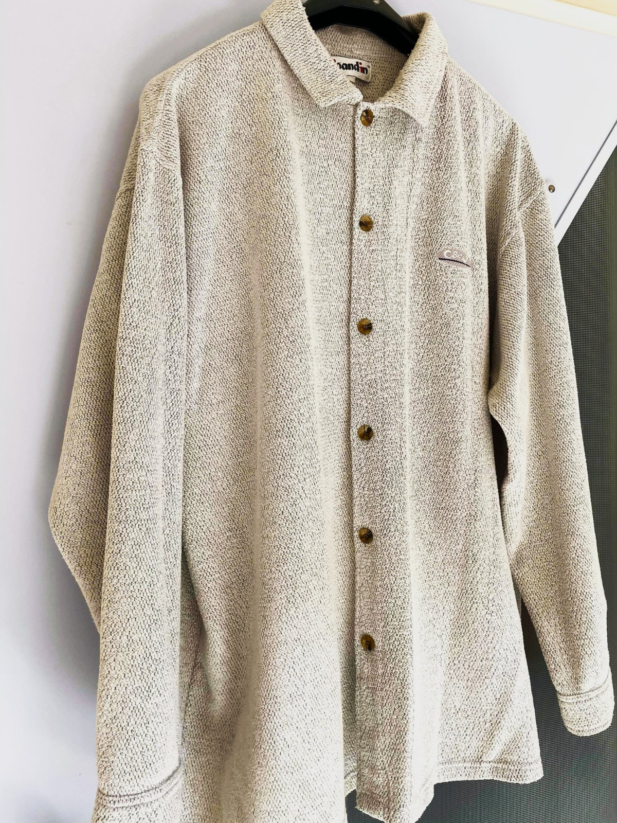 ležérna vrchná košeľa s voľnejším strihom, ktorú možno nosiť samostatne alebo vrstviť, s výraznou textúrou, ktorá pripomína buklé,dlžka celkom 81 cm, dlžka meraná od pazuchy smerom dolu - meraná na boku = 50 cm,ramená 20 cm, rukáv - na manžetku = 62/63 cm,šírka = 67 x 2 cm &