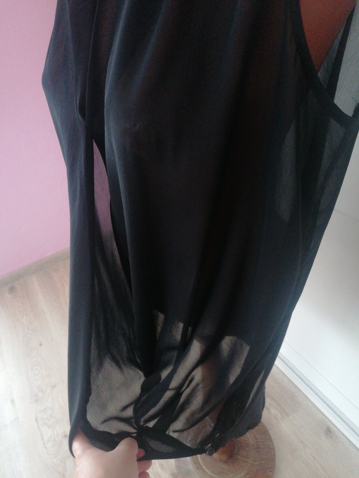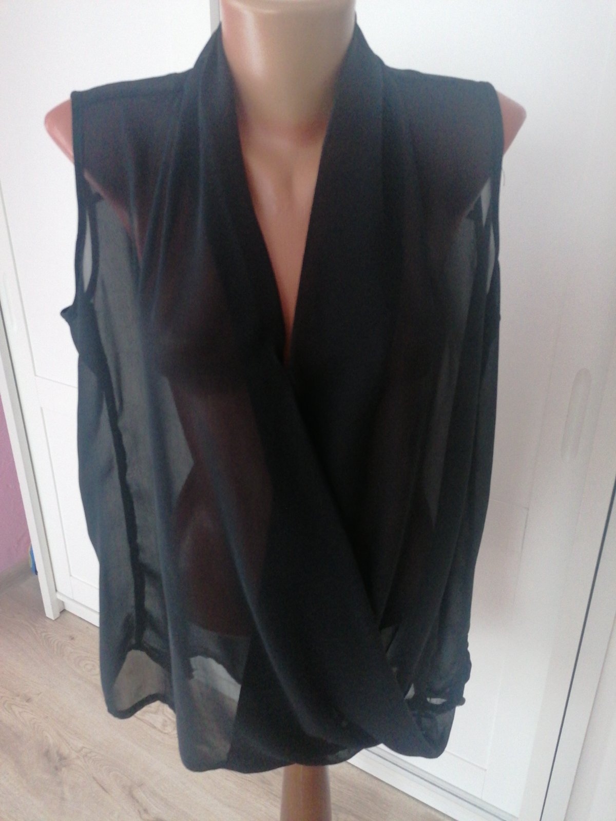 Predám blúzku je ako keby prekladana, vhodné nosiť pod nejaké tielko, lebo pre svitá, lístok som odstrihla, ale vhodná pre veľkosť 40/42.Tielko darujem k bluzke