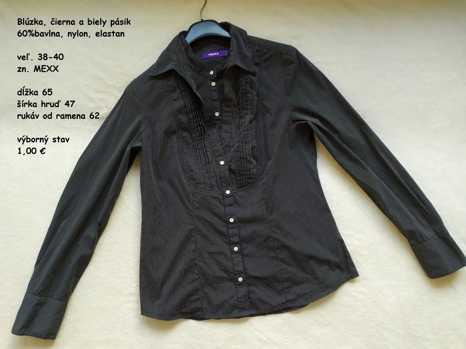 dĺžka 65cm, šírka hruď 47cm, rukáv od ramena 62cm