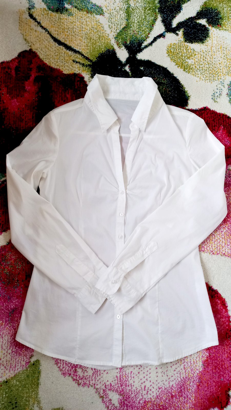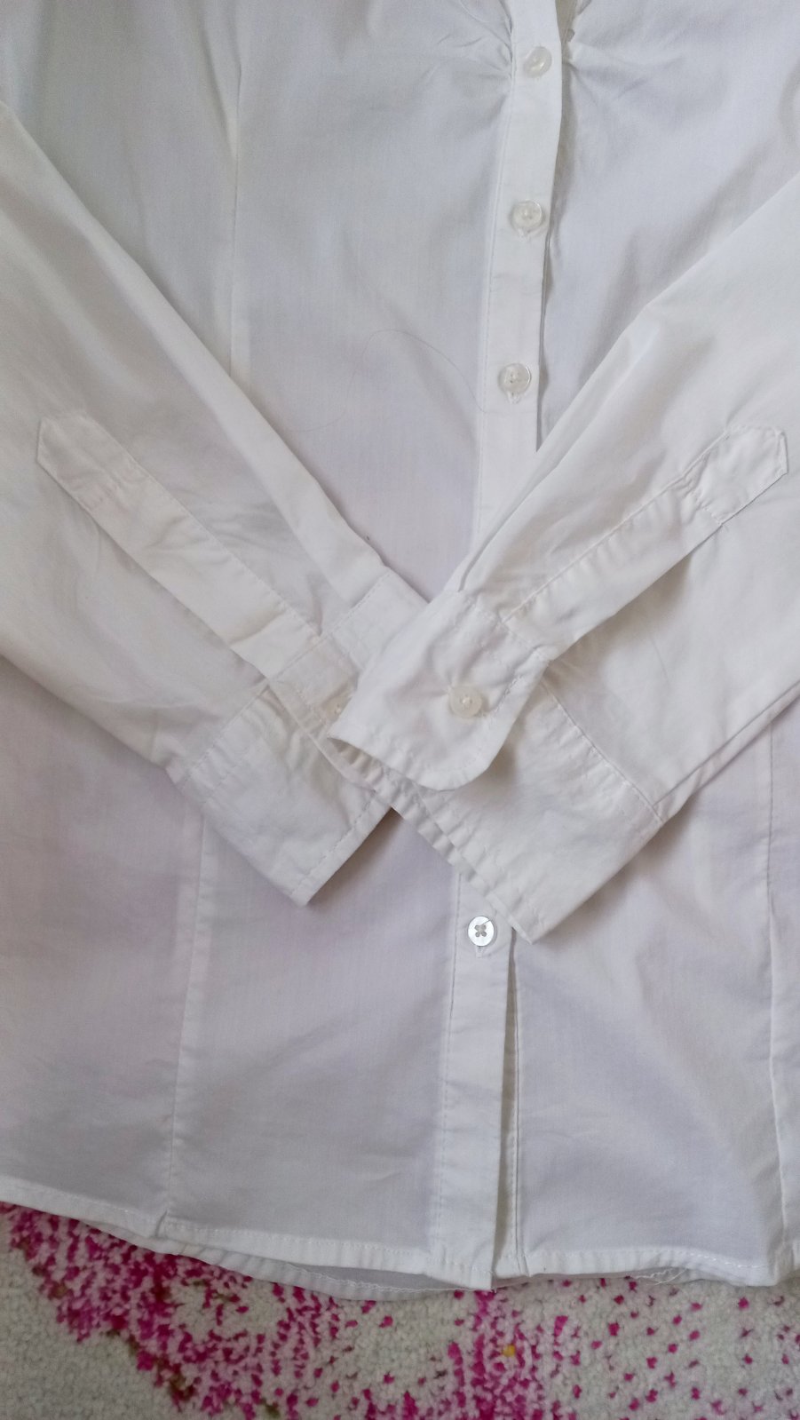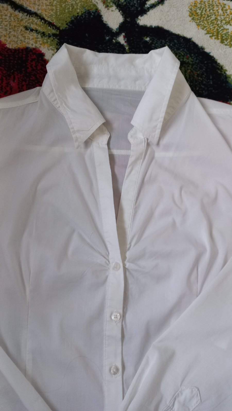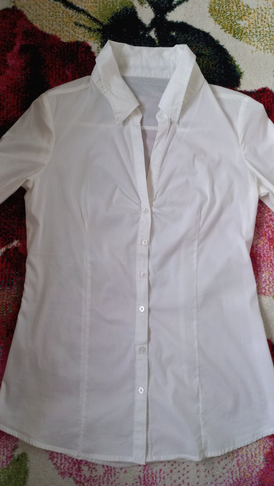 Pekná biela blúzka lemujuca postavu. Vpredu malé riasenie .