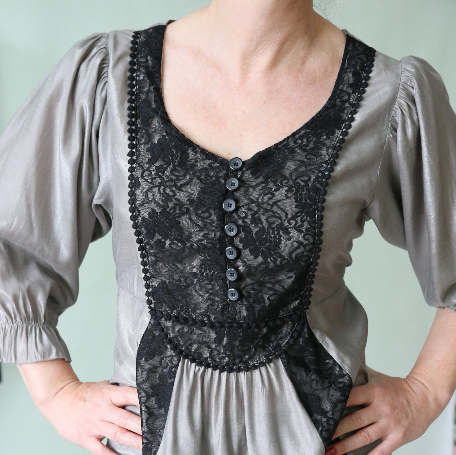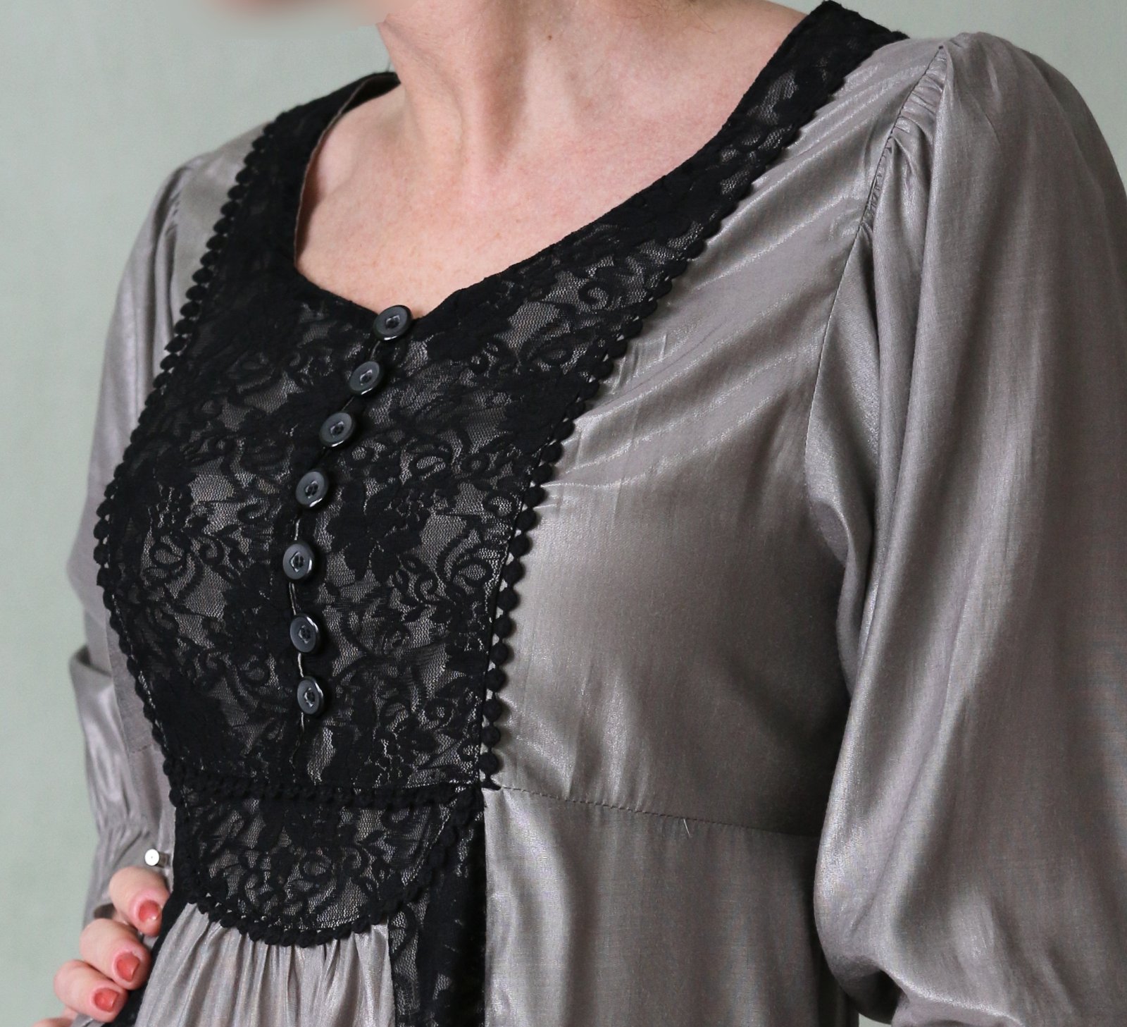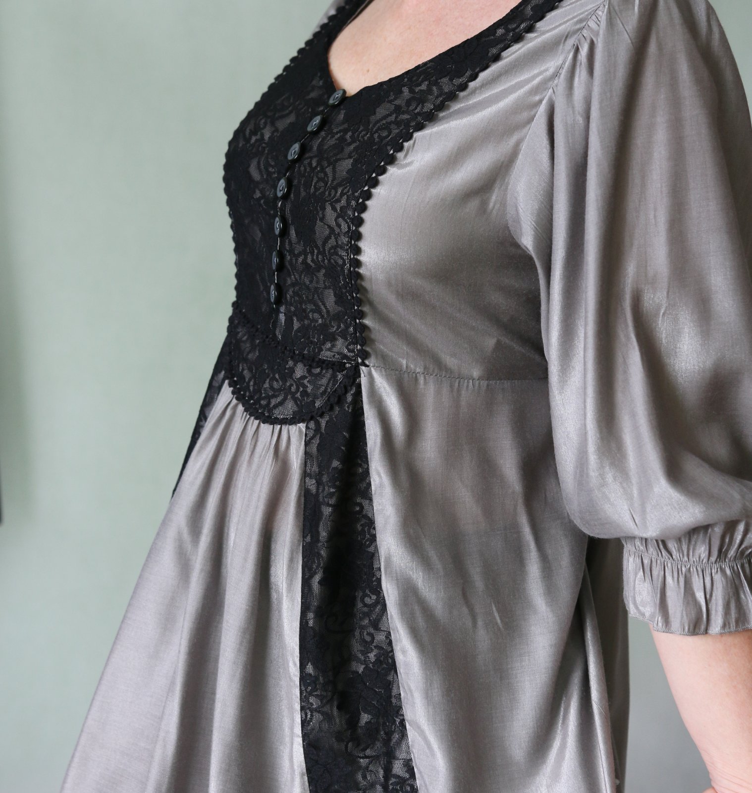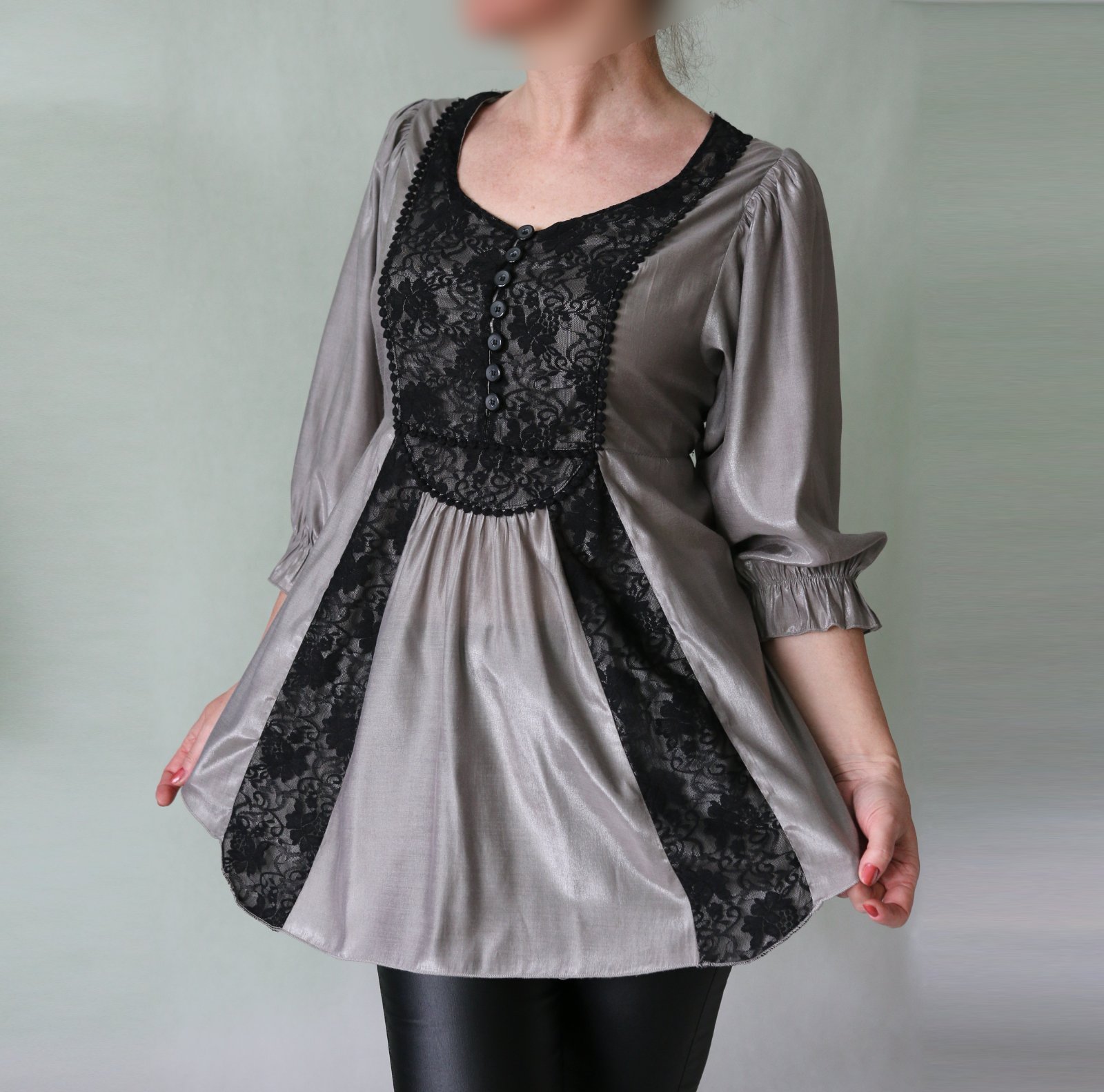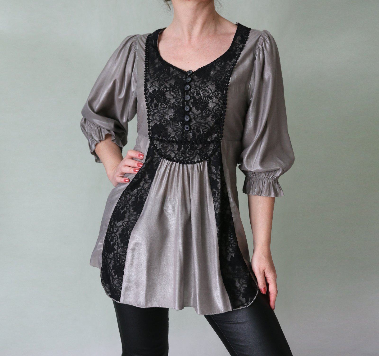 Striebrosivá tunika s čiernou čipkou veľ.38