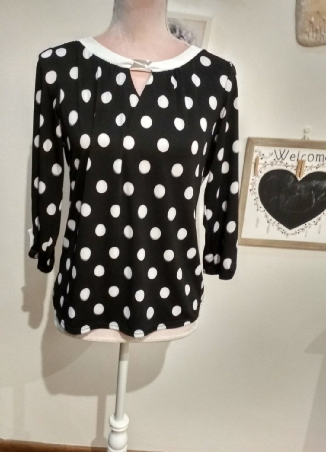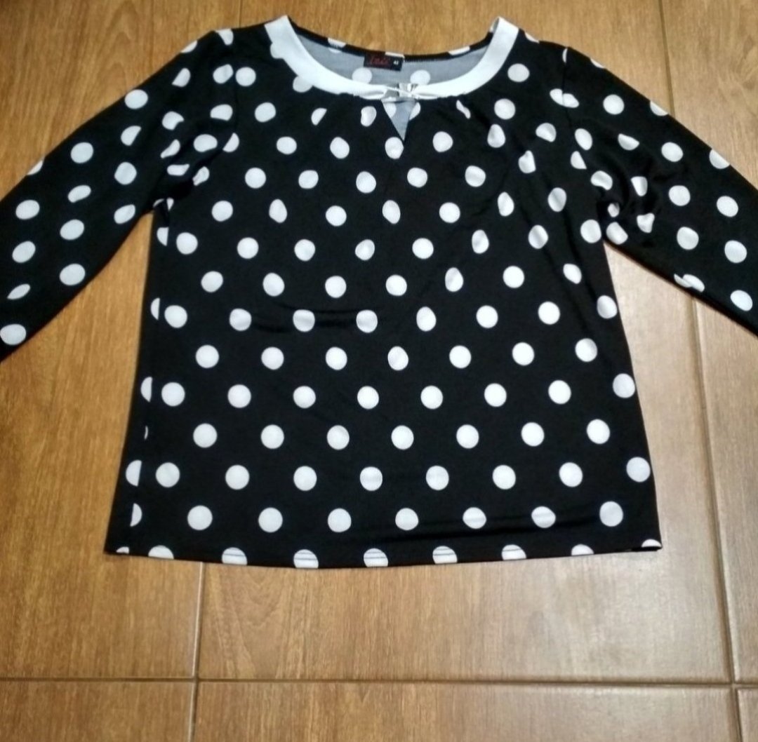 Krásny elegantný top pre dámy Príjemný, pohodlný, netlačí voľný strih, ktorý zakrýva všetky nedostatky. Príjemný model. Veľkosť : 42, 44, 46, 48, 50 Poľská značka, vyrobené v Poľsku. Farba ako na f...