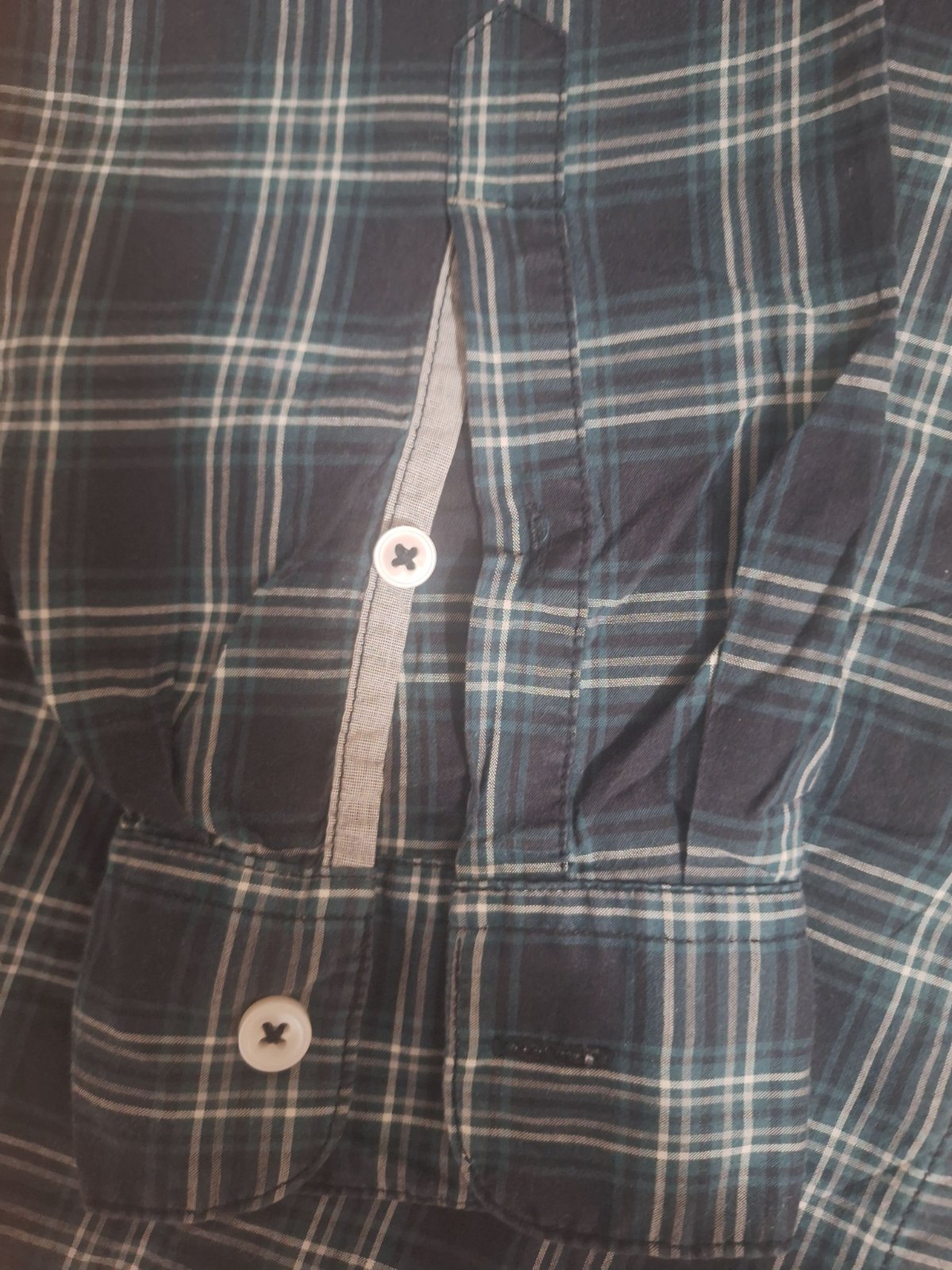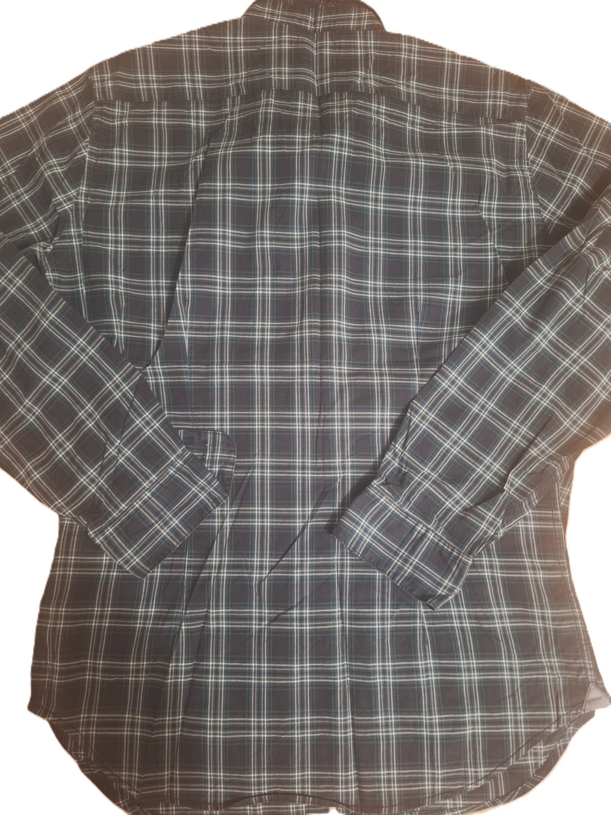 Košeľa vo veľmi dobrom stave a minimálne nosená. Materiál je z tenšej bavlny, má strih Slim Fit a na zadnom diele sú dva odševky."