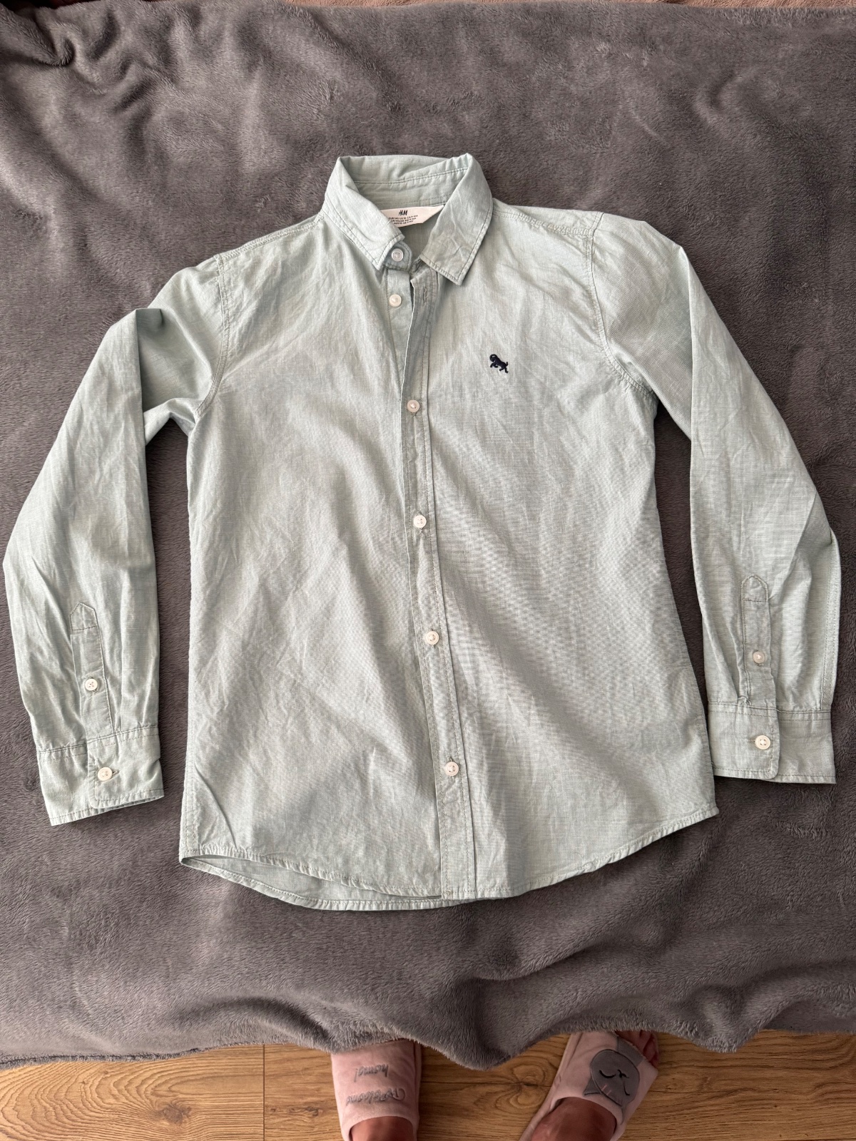Košeľa v dobrom stave, jeden fliačik odfotený, neskúšala som vyprať. Širka 42 cm, dĺžka 57 cm, rukav od krku 62,5 cm.