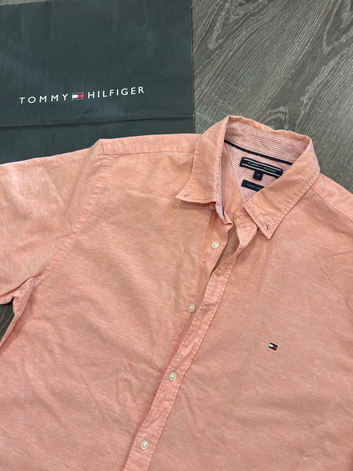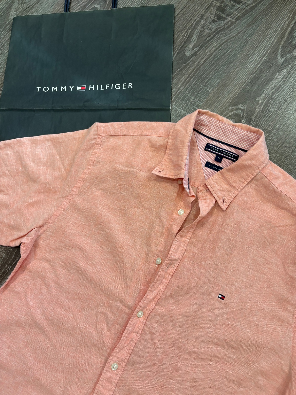 05.Tommy Hilfiger panska letna kosela v svetloorandzovej farbe,velkost M,v strede bola zašívana dierka,dlzka prednej casti je 76cm,zadnej casti je 81cm a sirka v podpazusi je 54x2cm