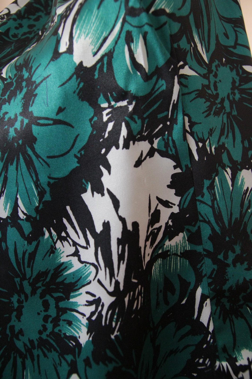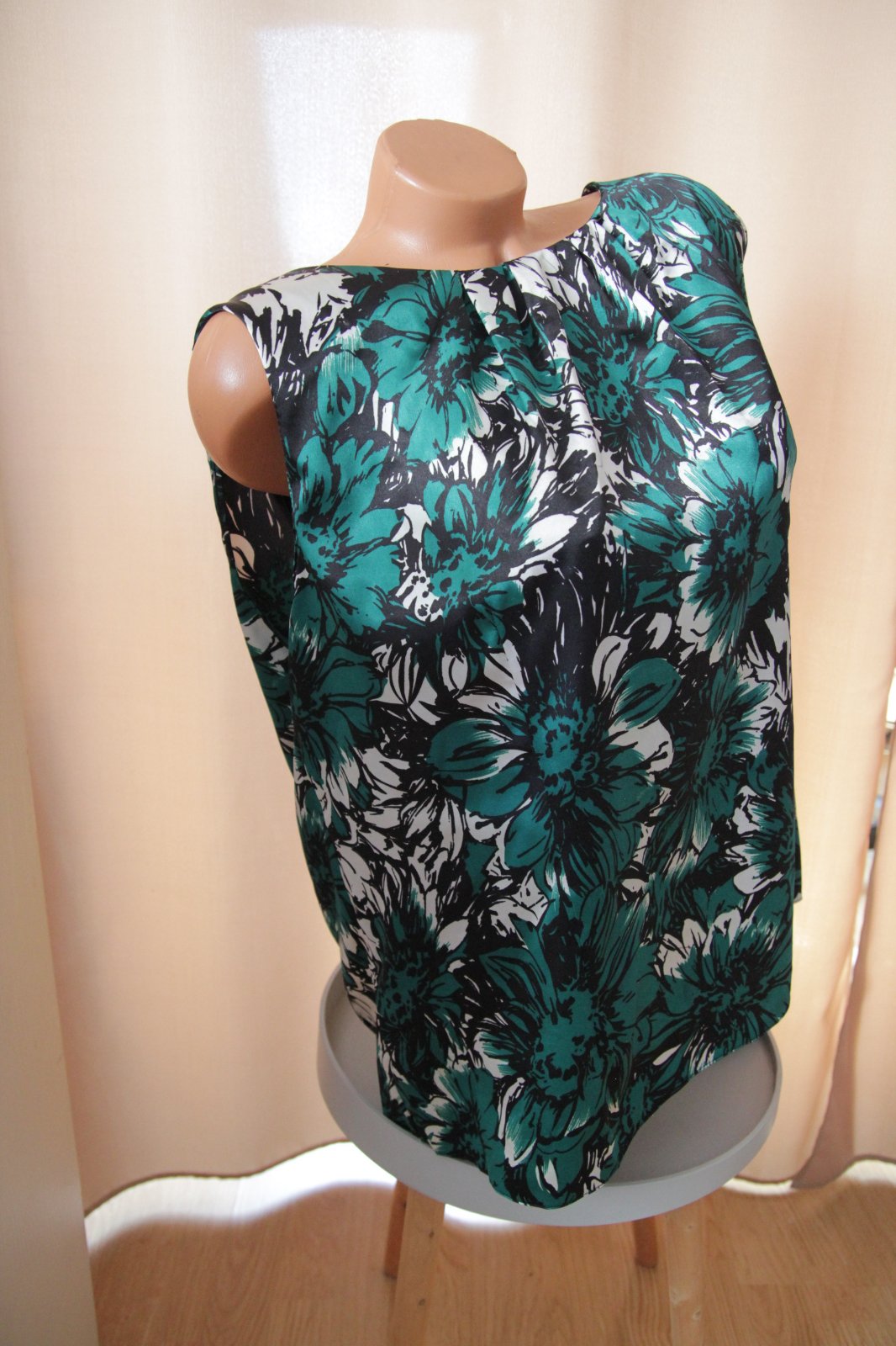 Zeleno bielo čierny saténový kvetinový top, veľkosť XXL. Vpredu má pár zatiahnutí.