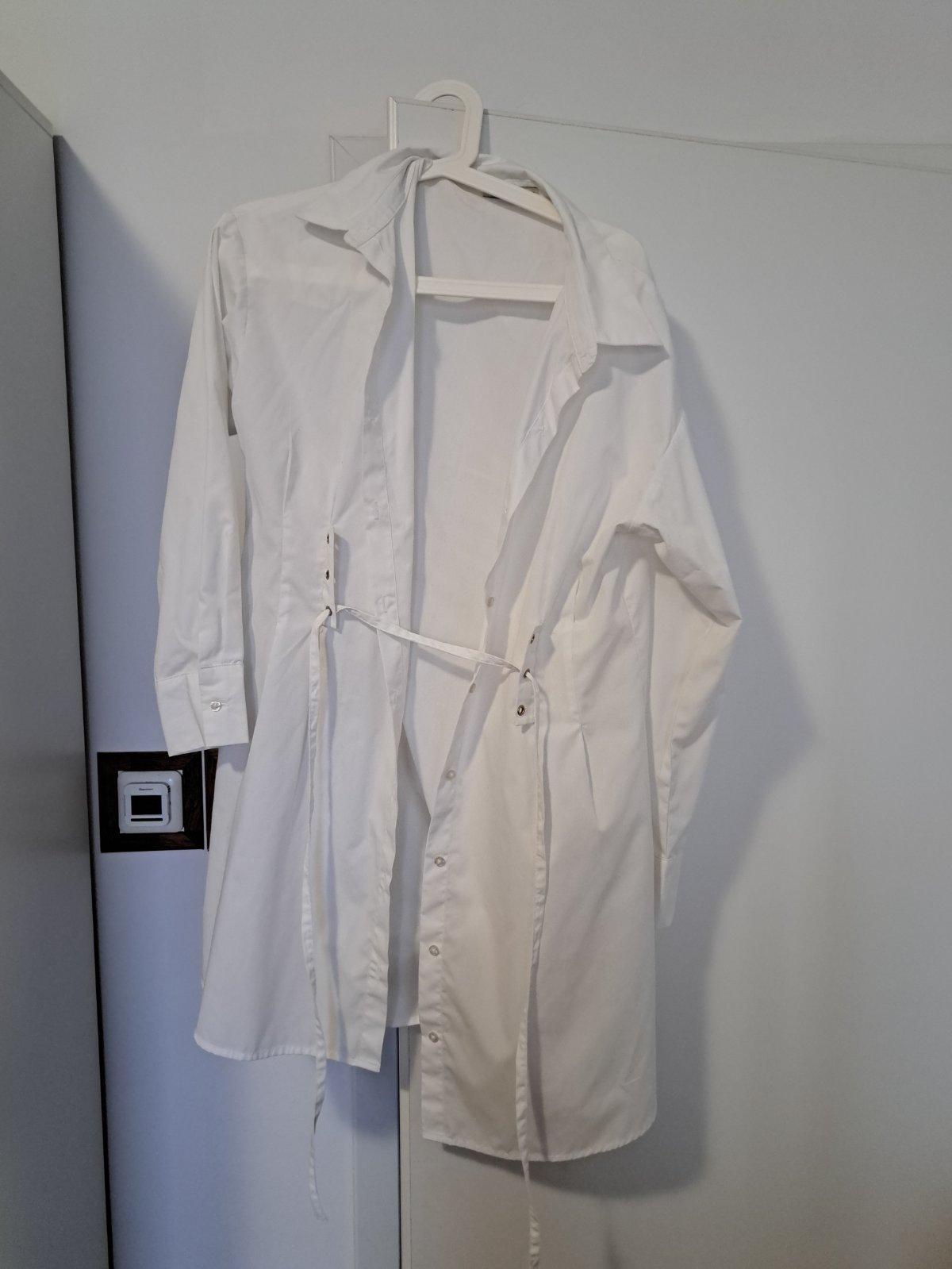 Transparentná blúzka. Hruď 62, dĺžka na bokoch 72, vpredu 63.