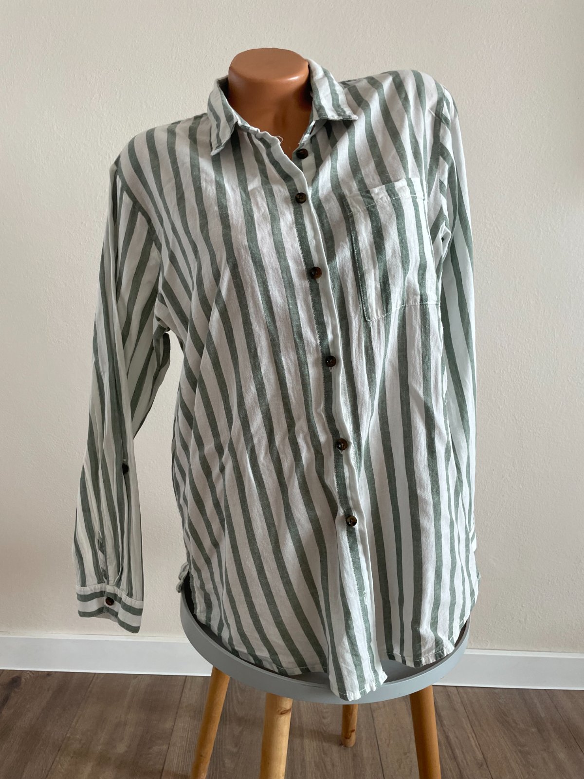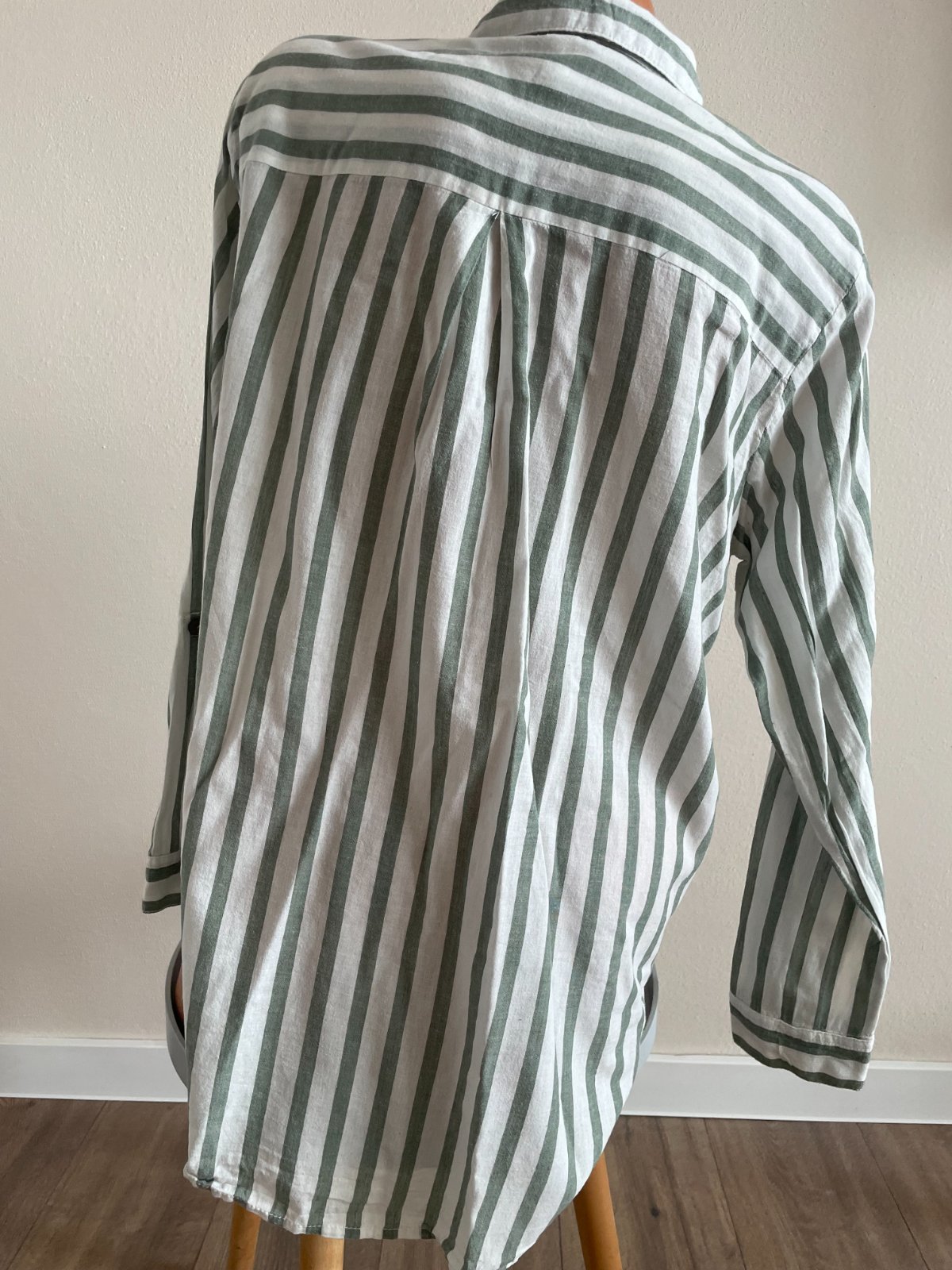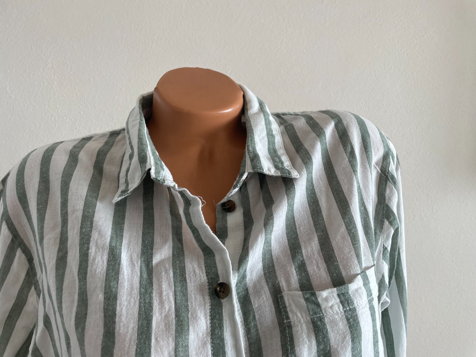 Zeleno biela pásikavá košeľa, veľkosť XXL, materiál je 100%bavlna. Nosená, má pár mini žmolkov.