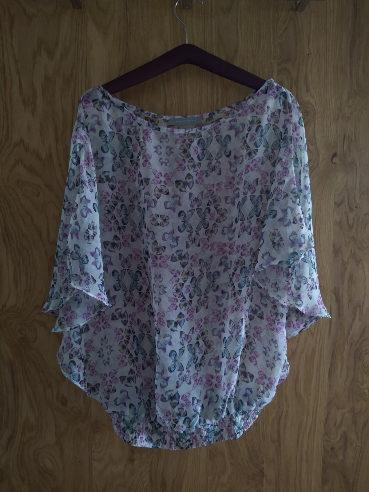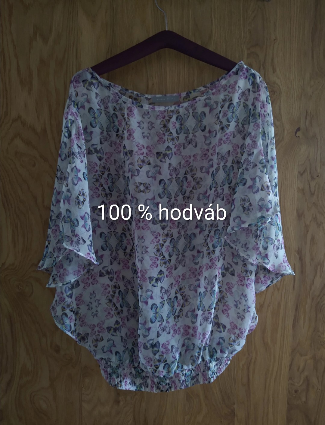 Pietro Filipi top s motýlími rukávmi aj motýľou potlačou veľ. voľné, ale sedí cca na M-L, top je voľný, naspodku má gumu, rukávy sú voľné. Jemná hodvábna látka, priehľadná, dá sa nosiť napr. na tielko telovej farby. Nosené žalostne málo, stav ako nový.