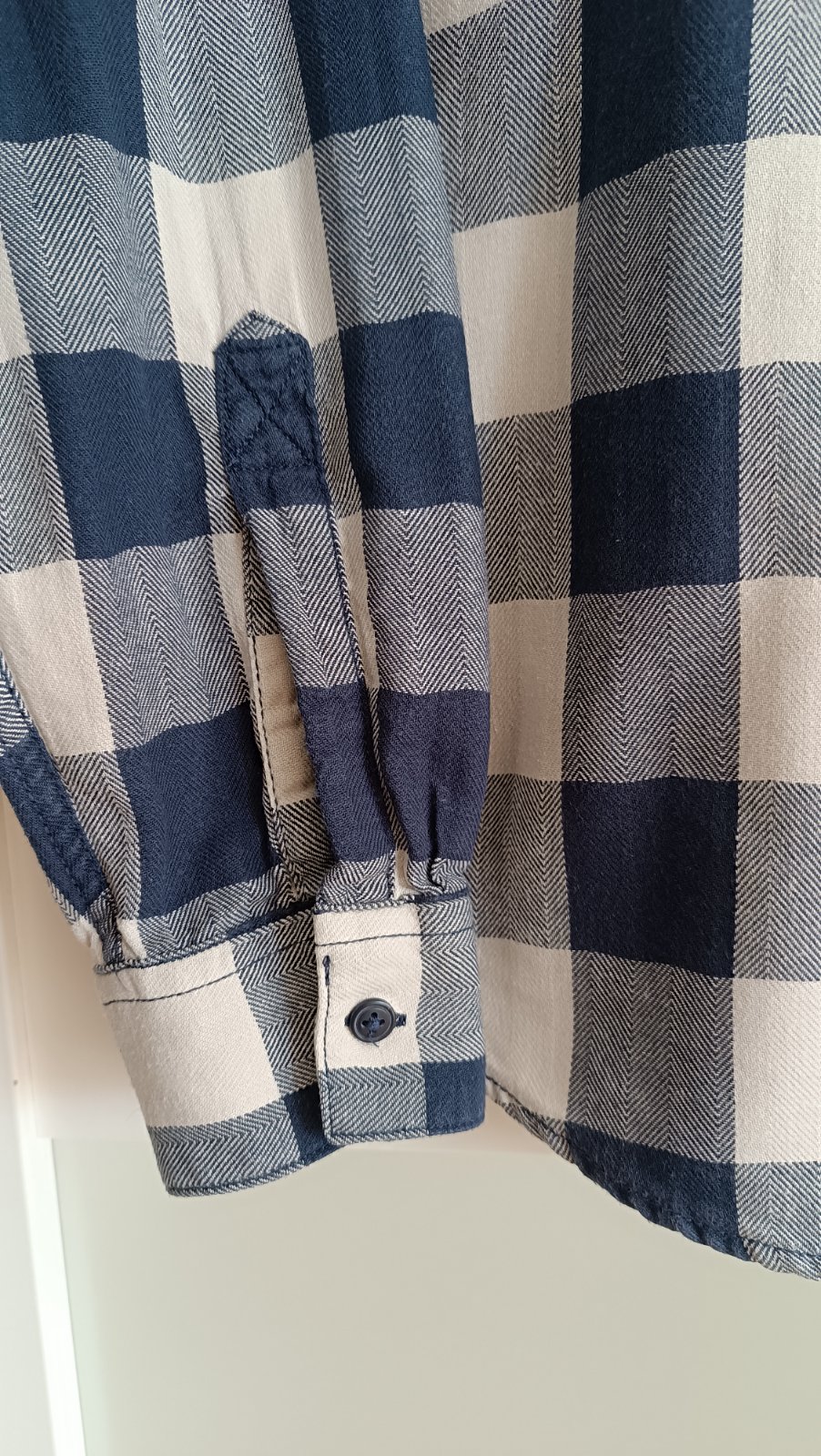 Uvedená veľkosť S ale podľa rozmerov skôr veľkosť M, dĺžka 71 cm, šírka 51 cm, rukáv od pleca 66 cm, 100% bavlna