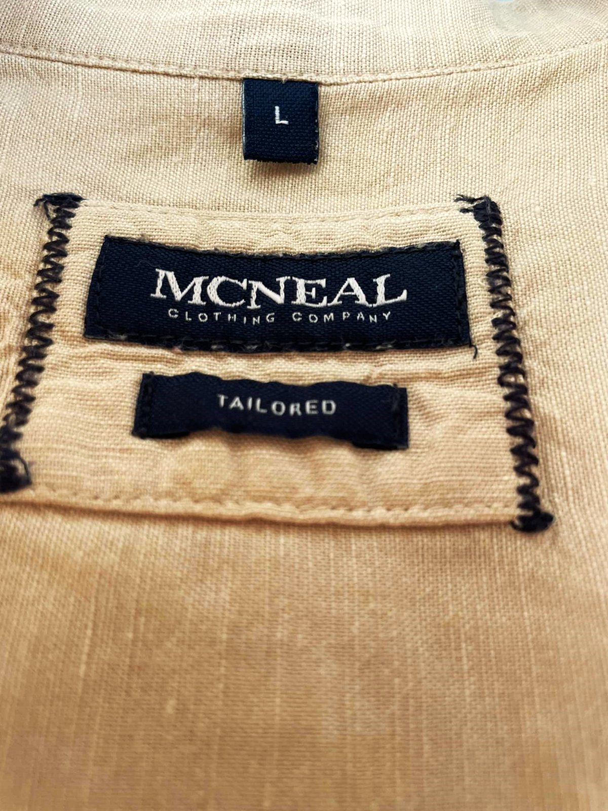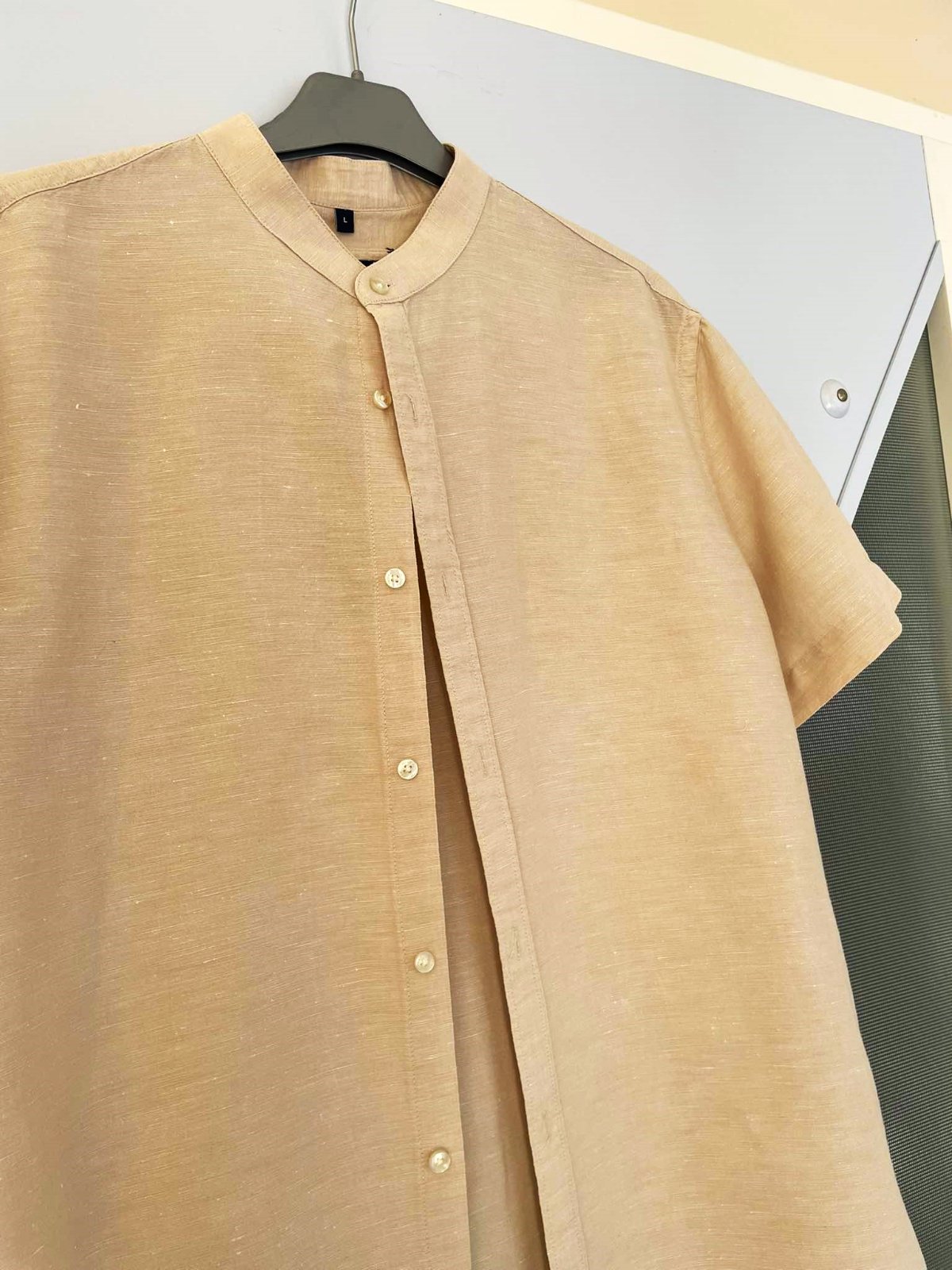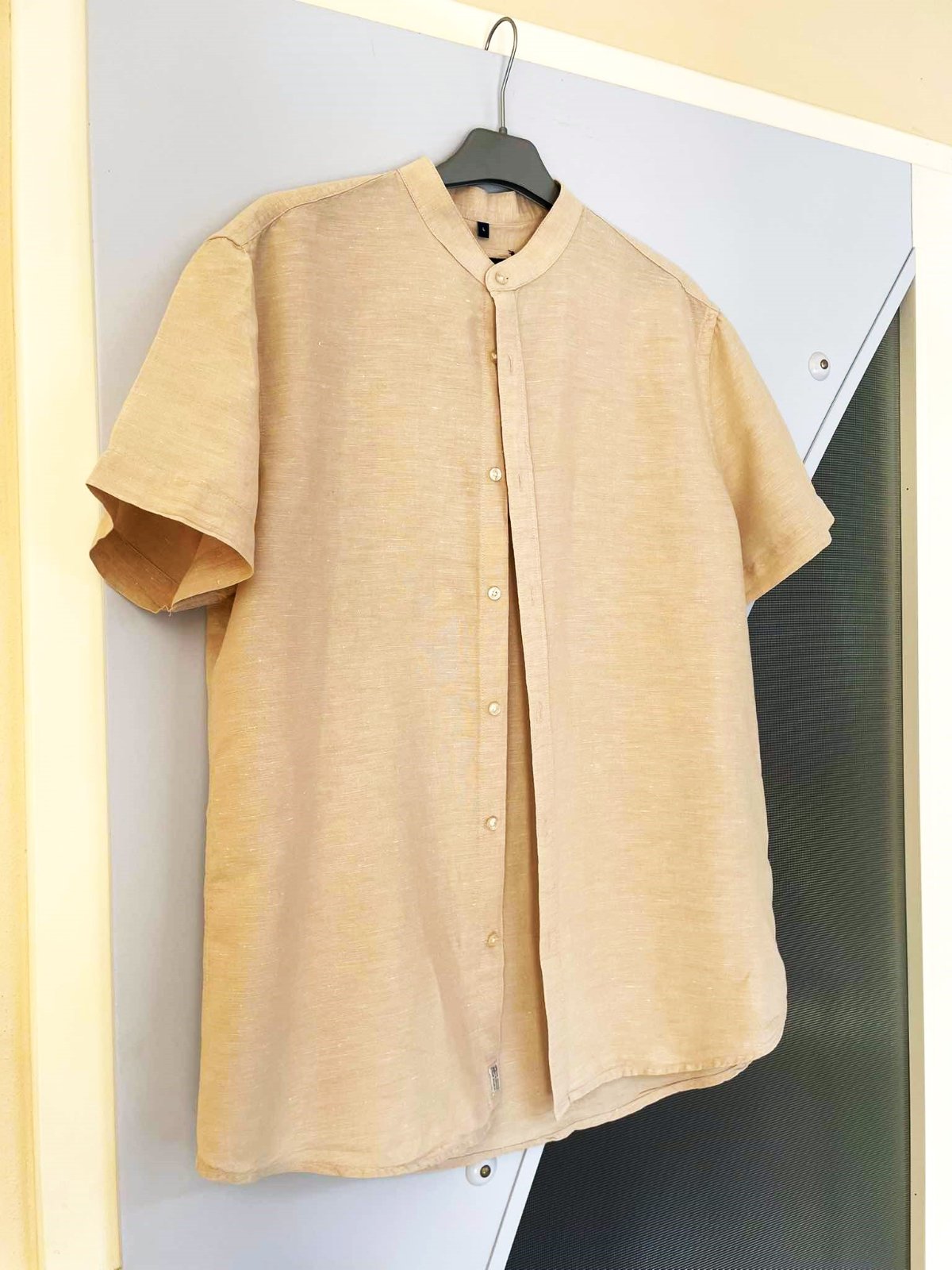 krásna neznosená košeľa so stojačikom,pre milovníkov ležérnej ľanovej módy,značka a materiál vyfotené,pekne priznaná štruktúra ľanu,vzadu po bokoch jemné záševky,nosí sa voľná,šírka meraná pod pazuchou = 56/57 cm, šírka nižšie = 54/55 cm,dlžka celkom = 74 cm, vzadu o niečo viac