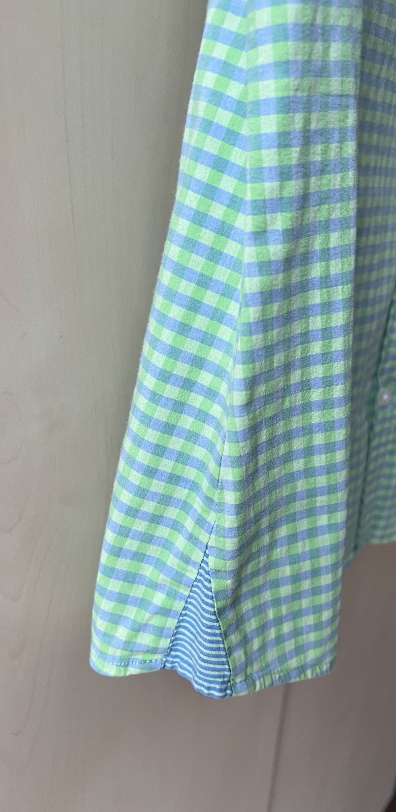 Veľmi príjemný materiál, elastický. Farbu som nevedela dobre zachytiť, najlepšie zachytená je farba na poslednej fotografii. Rozmer: pod pazuchami 2x53, dĺžka 66, pás 2x50, boky 2x54.
