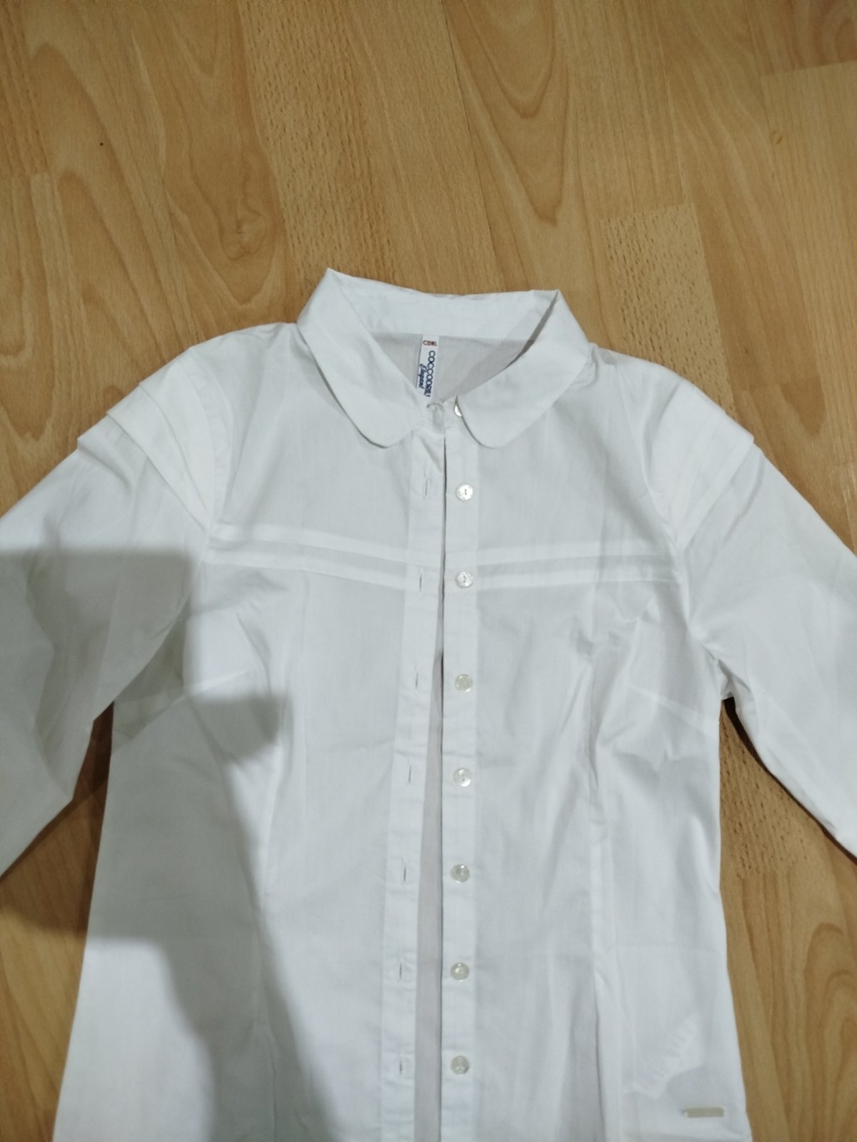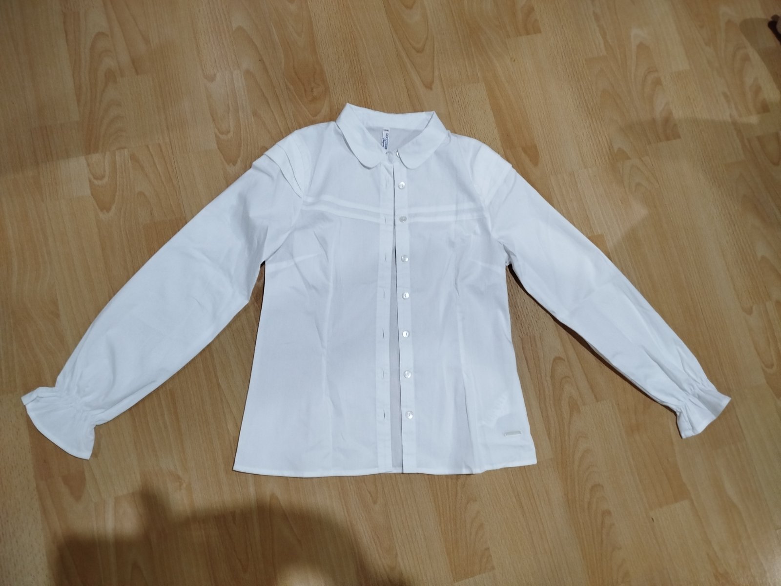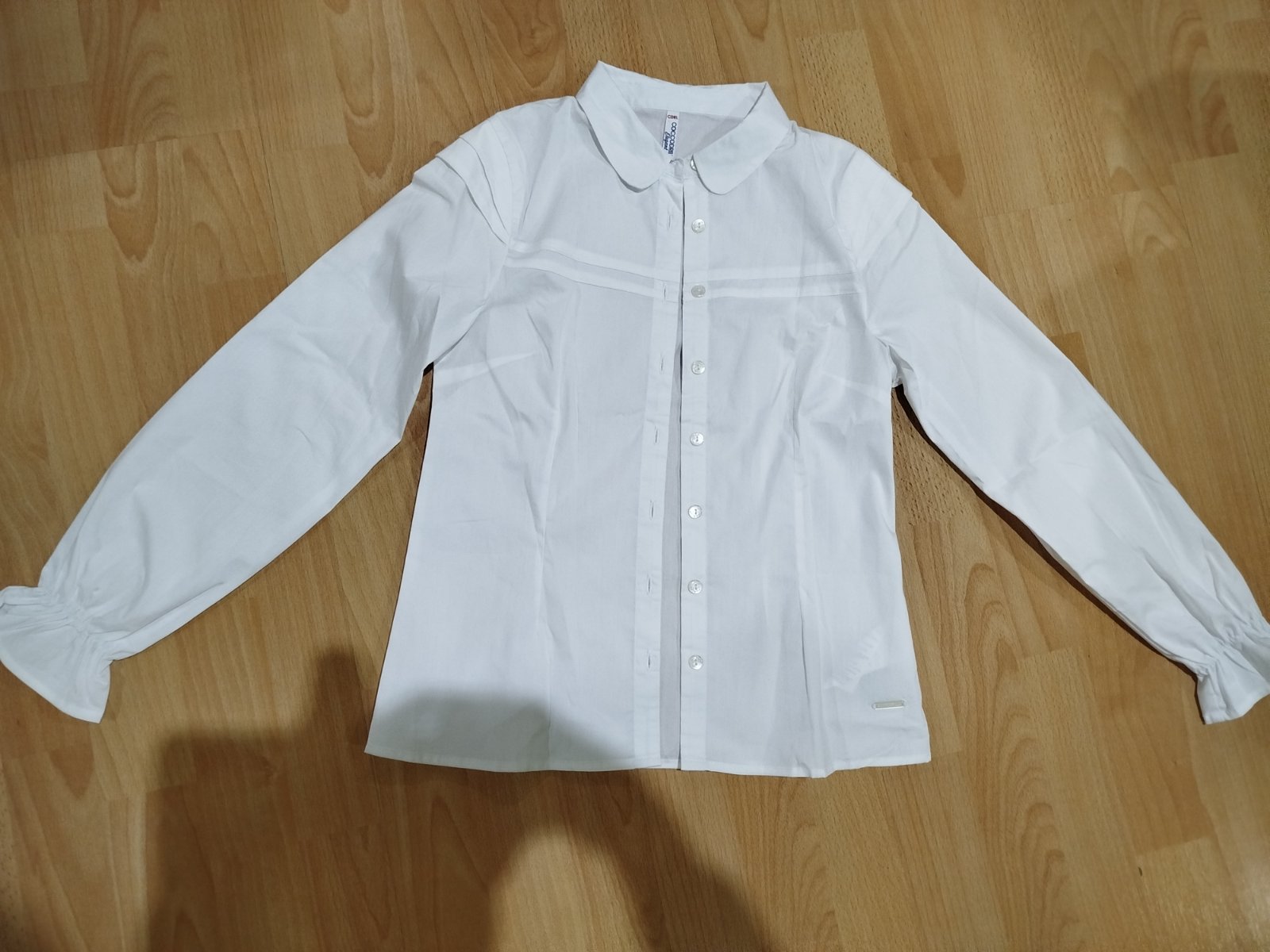 Biela košeľa veľ. 152,rozšírená,kratši strih, veľmi pekná. Žiadne poškodenie. Károvaná flanelová, oversize veľ. 134,dcéra nosila do veľ. 152 lebo je chudá. Žiadne poškodenia. Cena za obe.