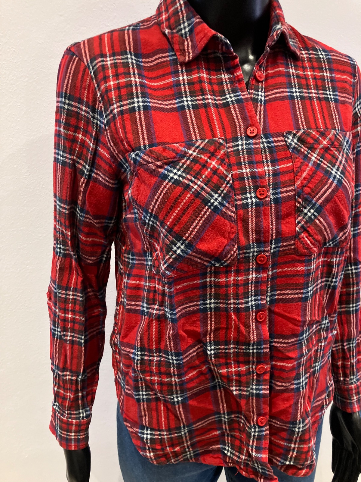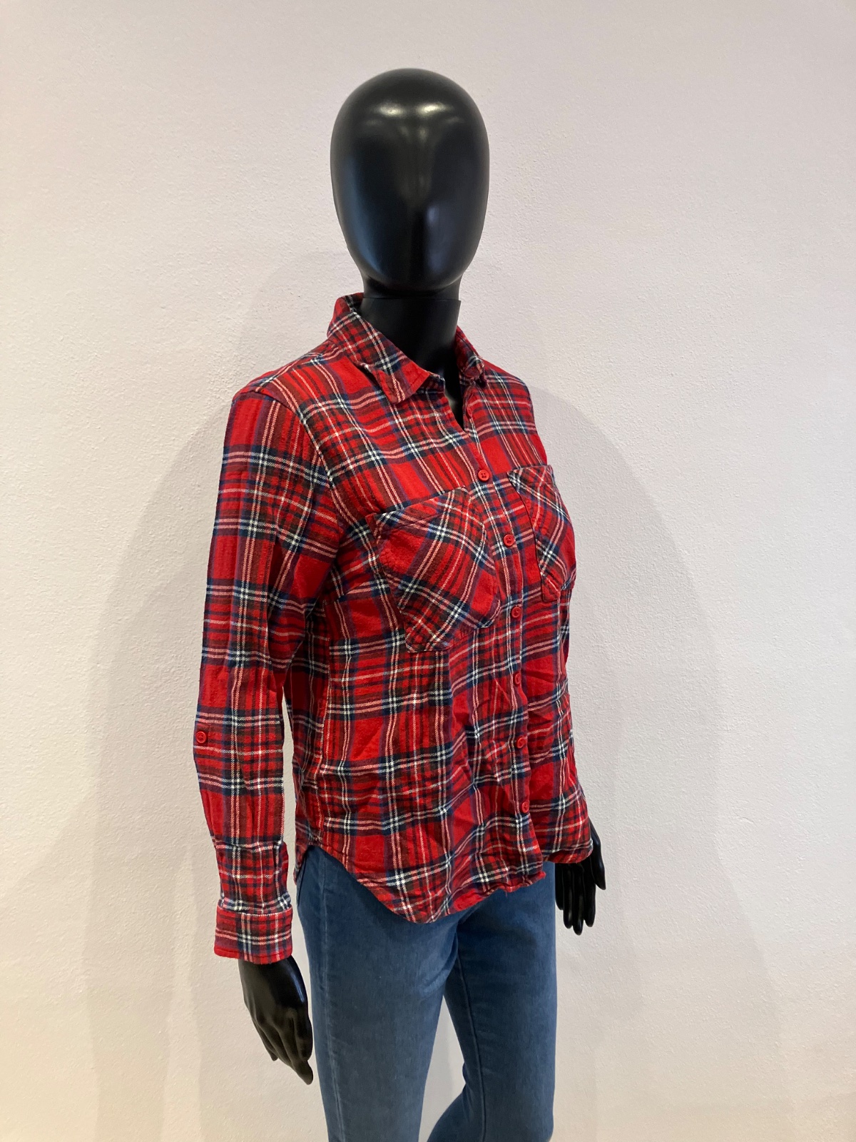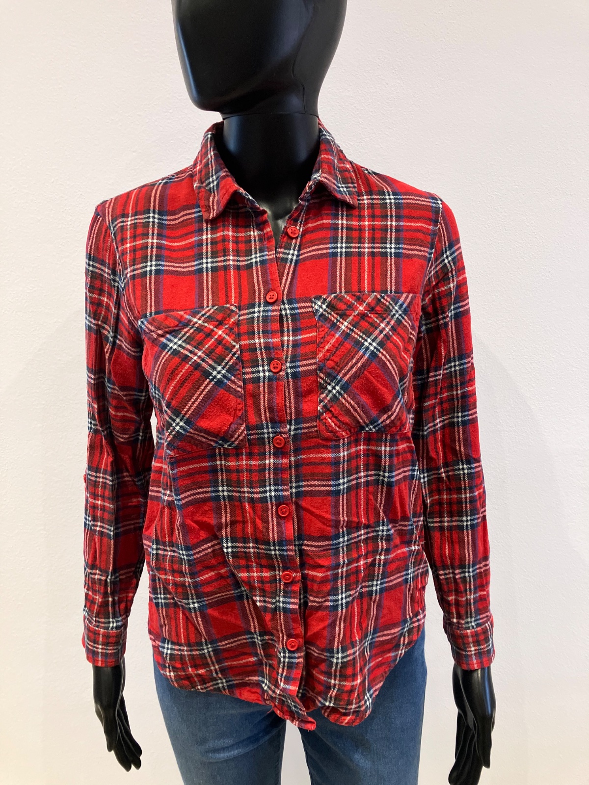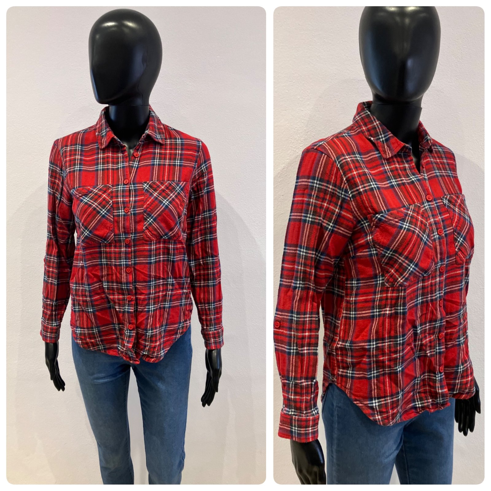 Dámska flanelová károvaná košeľa s dlhým rukávom, zapínanie na gombíky, dve predné vrecká, málo elastická, materiál 100%bavlna.
