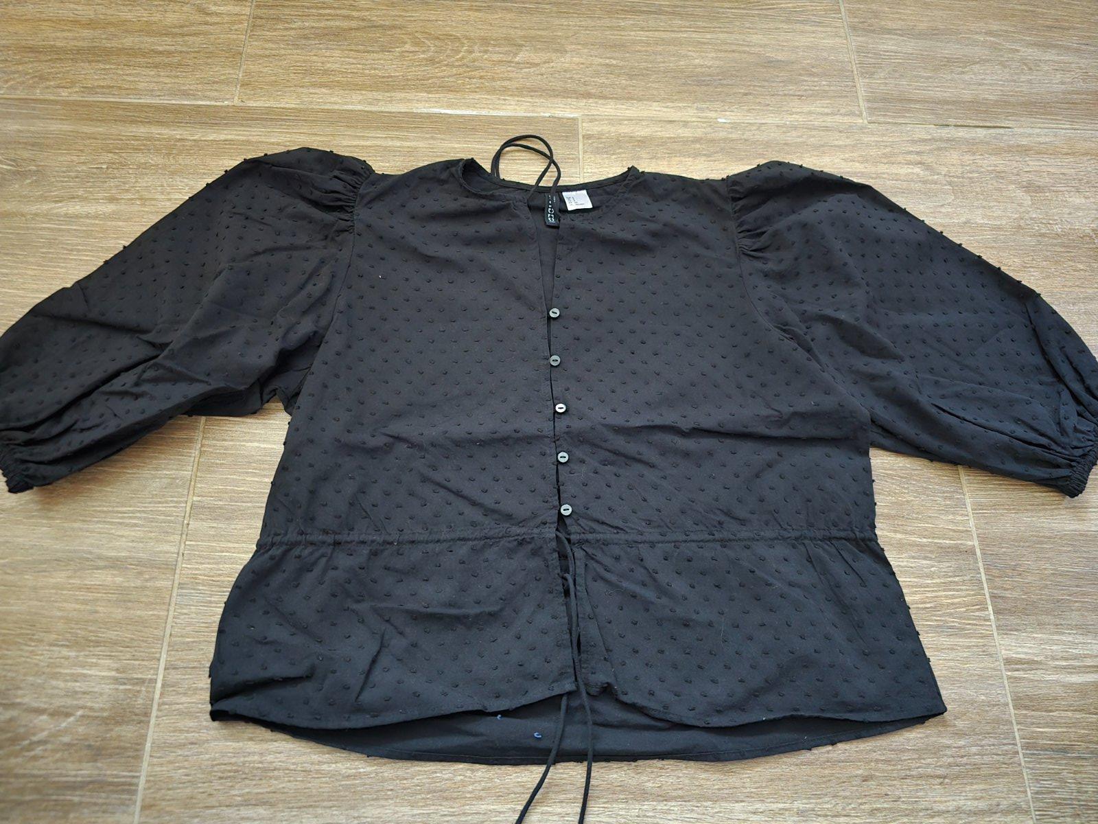 Predám šifónovú podšitú čiernu blúzku s vybíjanými zlatými ramenami. Je pekná, nebola vôbec nosená, pretože bola kúpená cez internet a nesadla mi veľkosť. Veľkosť je XS/S.