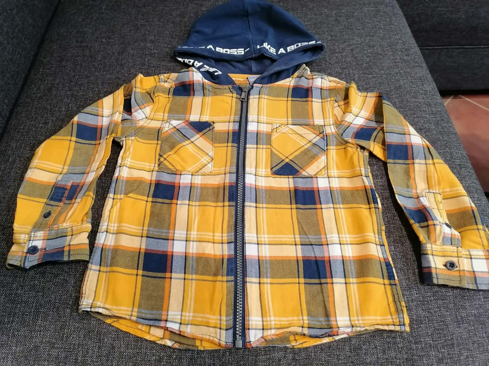 Predám parádnu košielku s kapucou - veľlmi ľahunká látka, synček ju veľmi rád nosil cez leto, keď sa večer už začalo ochladovať. Veľmi dobrý nosený stav. Cena bez poštovného