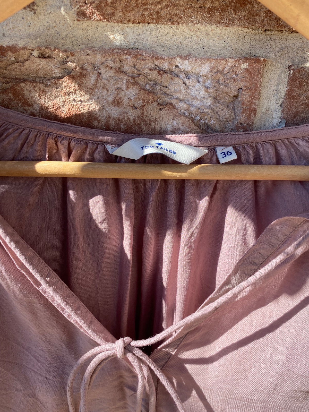 Ľahká blúzka Tom Tailor, jemná púdrová farba. Rukávy sú roll-up. Môžu sa nosiť dlhé alebo vyrolované. Padavý, ľahký, málo krčivý materiál. Voľnejší strih. Veľkosť je 36, sadne aj na 38. Výborný st...
