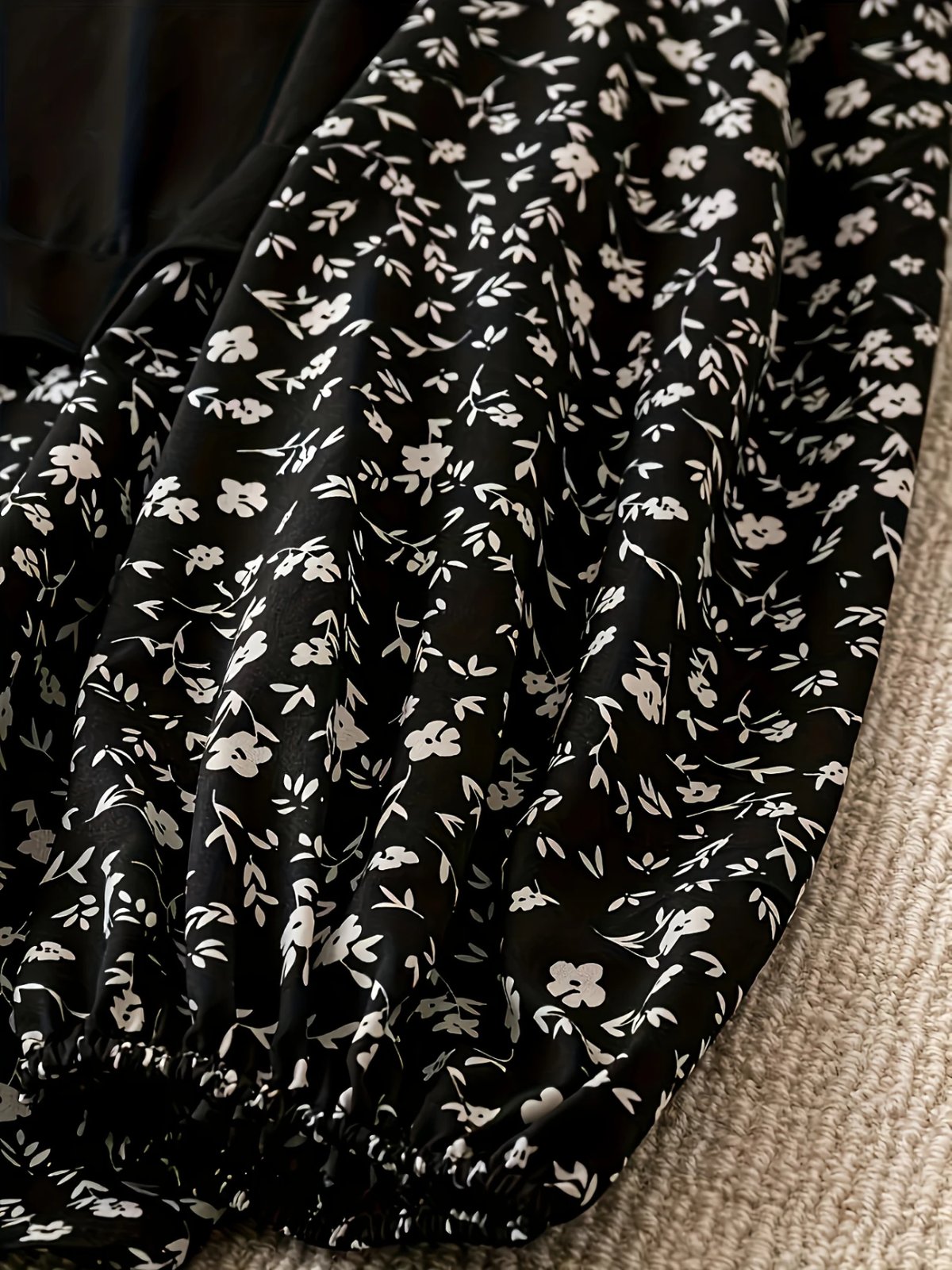 Dámska blúzka s dlhým rukávom. Čierno-biela kontrastná línia s náhodným kvetinovým vzorom. Trupový top je príjemný, priedušný, elastický...
